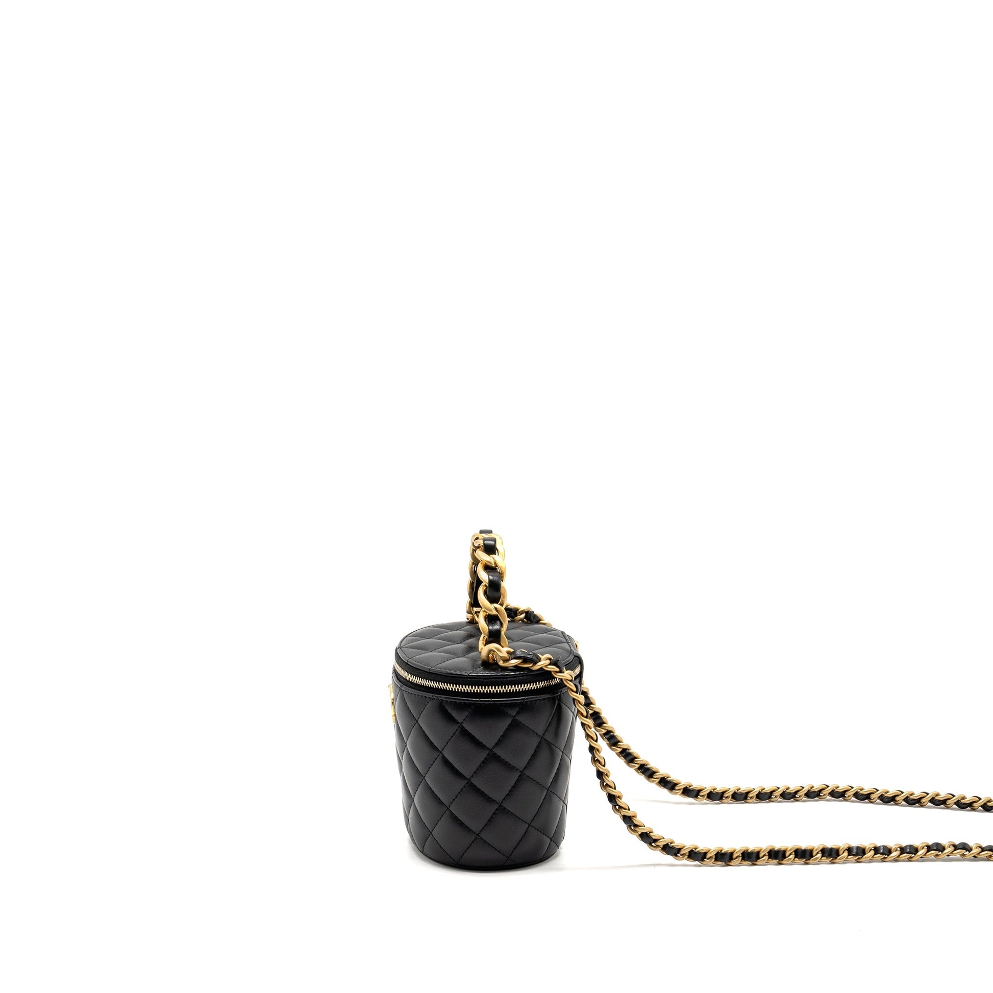 CHANEL Afternoon Tea Top Handle Vanity Case With Chain Lambskin Black GHW (Microchip)
