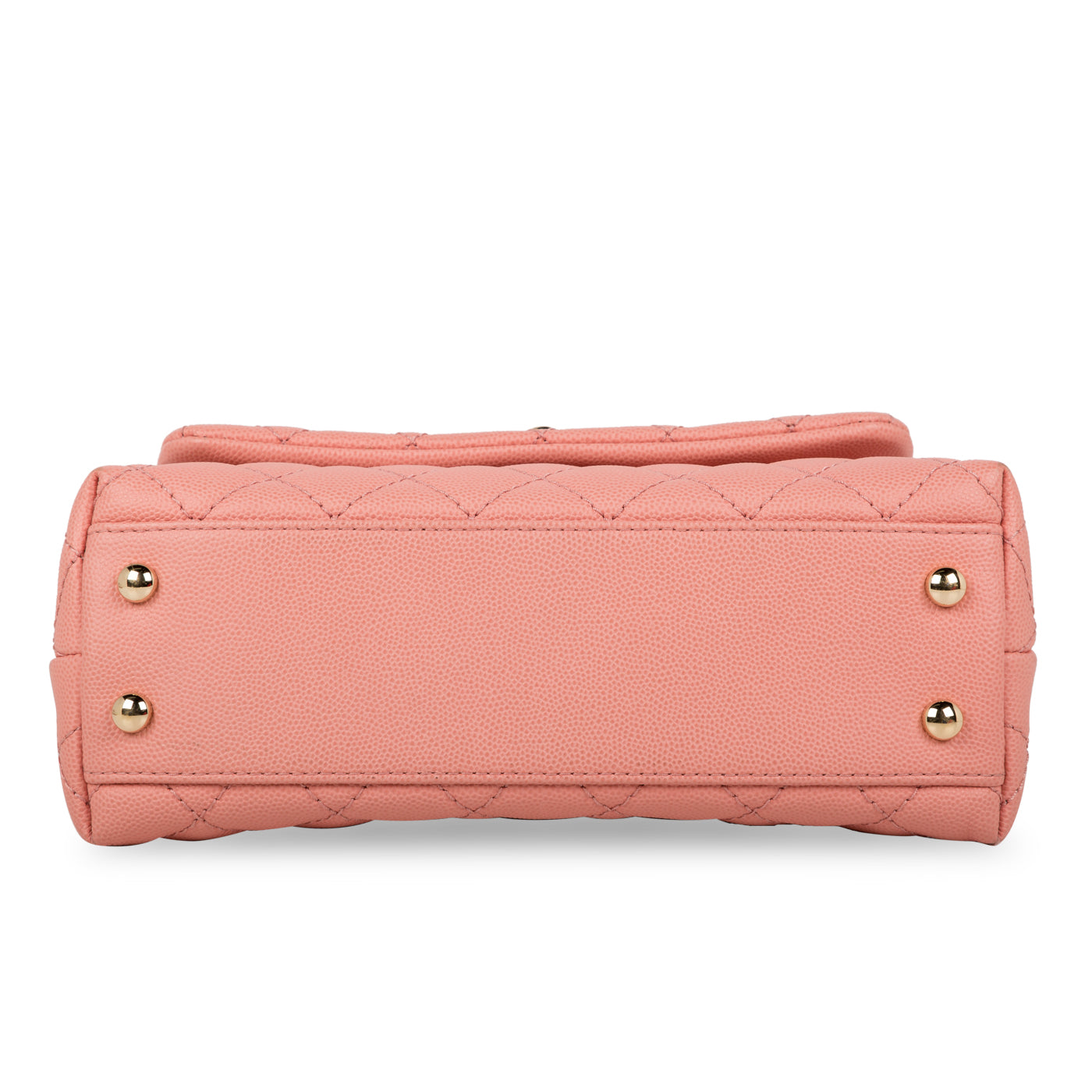 The Mini Coco Handle, crafted from a vibrant baby pink, caviar leather, is the smallest of the collection - exuding the perfect mix of practical and stylish. Designed for hand held use or for over-the-shoulder wear with the very convenient removable strap. This Chanel may be a mini, but it comes with two compartments and includes two extra pockets. Chic and sweet, this Chanel is a delightful edition to any bag-lovers wardrobe.