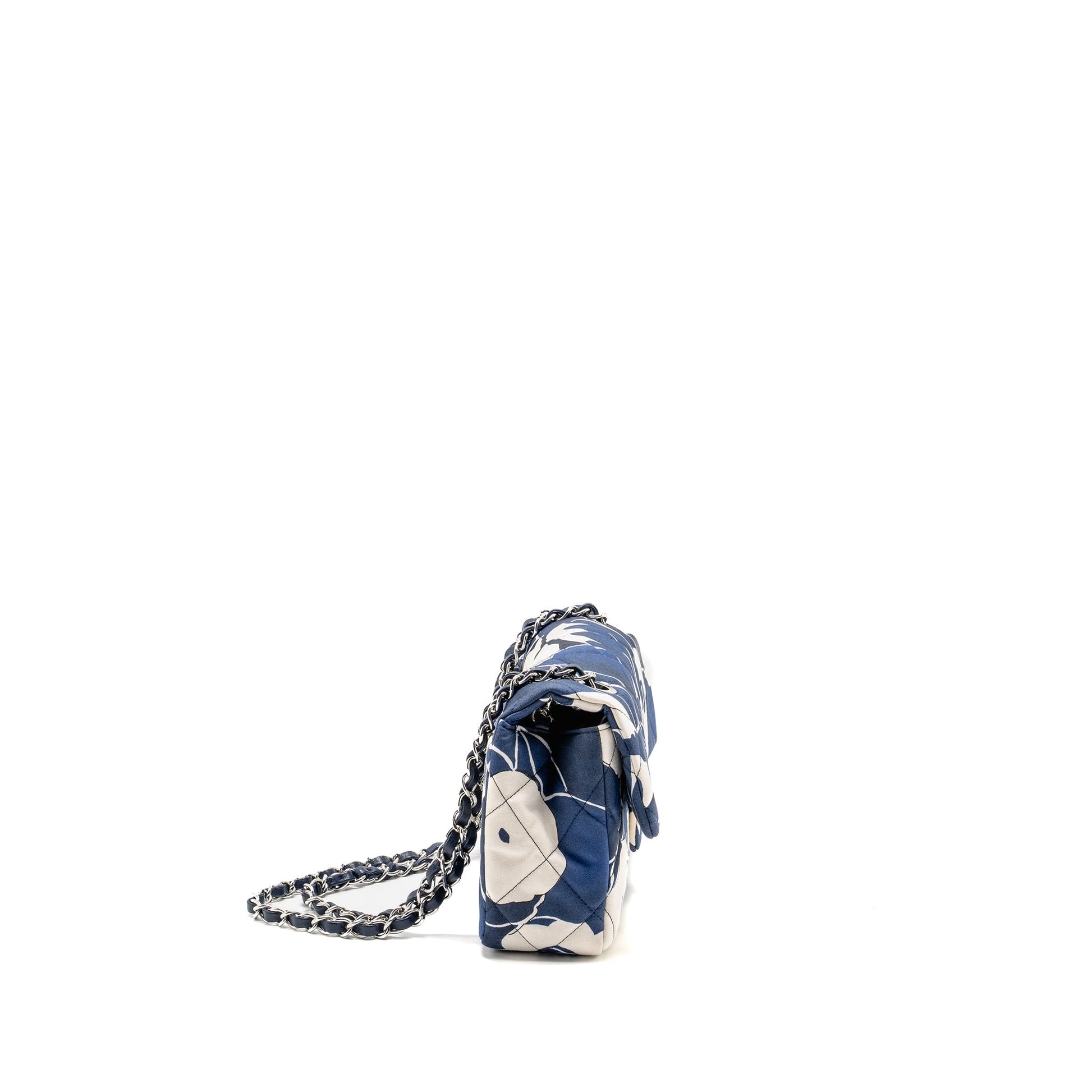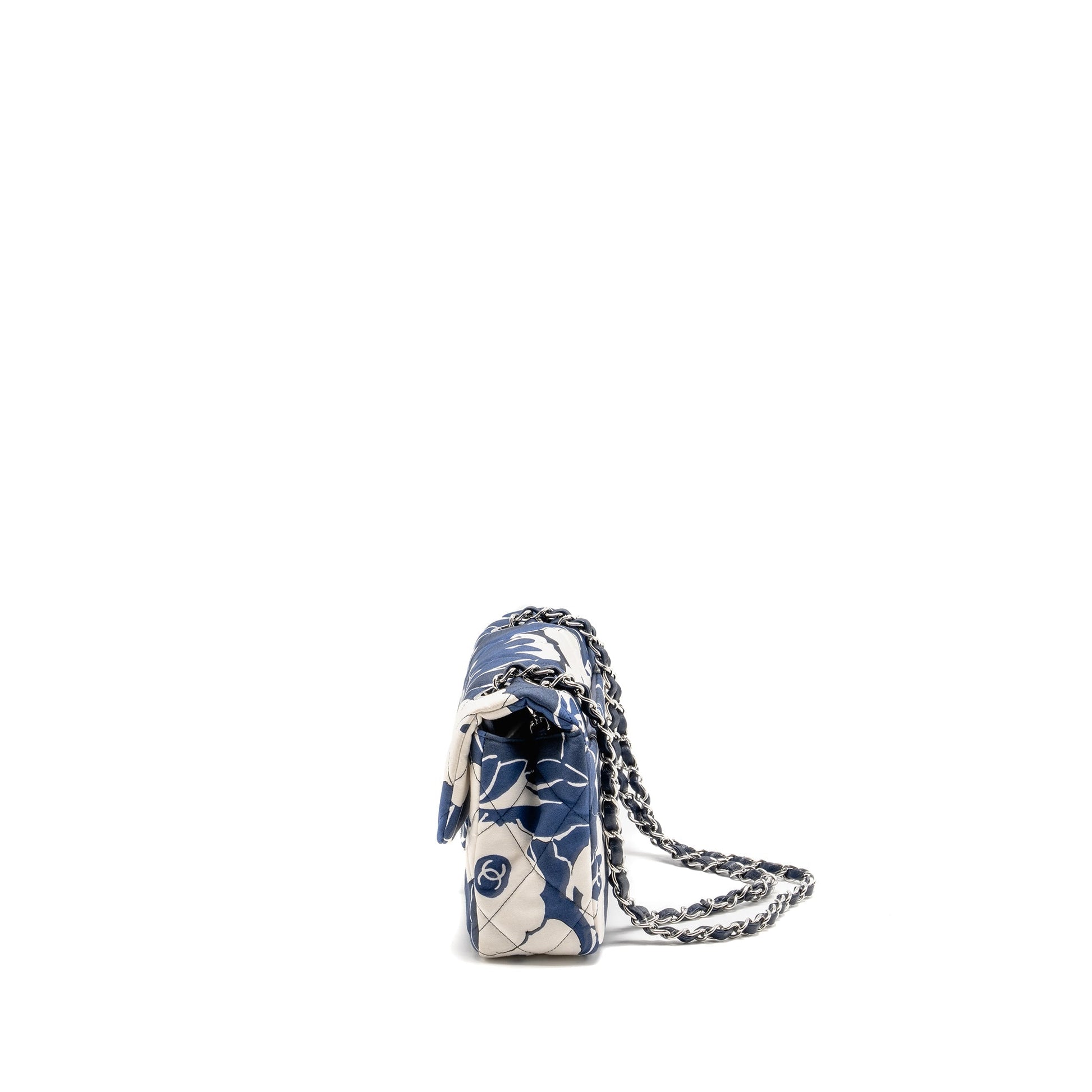 Chanel Medium Limited Edition Flora Printed Classic Flap Bag Silk Blue/WHITE SHW (Microchip)