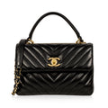 Oozing allure and sophistication, Chanel presents one of its most ravishing, highly acclaimed handbags, the Chanel Trendy CC Flap in Small. Crafted from radiant black lambskin and punctuated with in Chevron, the handbag features a sporty yet sharp silhouette. Its exterior is adorned in polished gold hardware with a rather enlarged CC clasp and Chanel’s signature chain strap. Ideal for the lady who bears an adoration for Chanel handbags but wants to steer away from the classic collection without compromising on aesthetic, the Trendy CC flap can be worn both during the day and night. Simply pair with an elegant pair of court heels and blasé dress to create a look that is as contemporary as it is Marilyn Monroe.