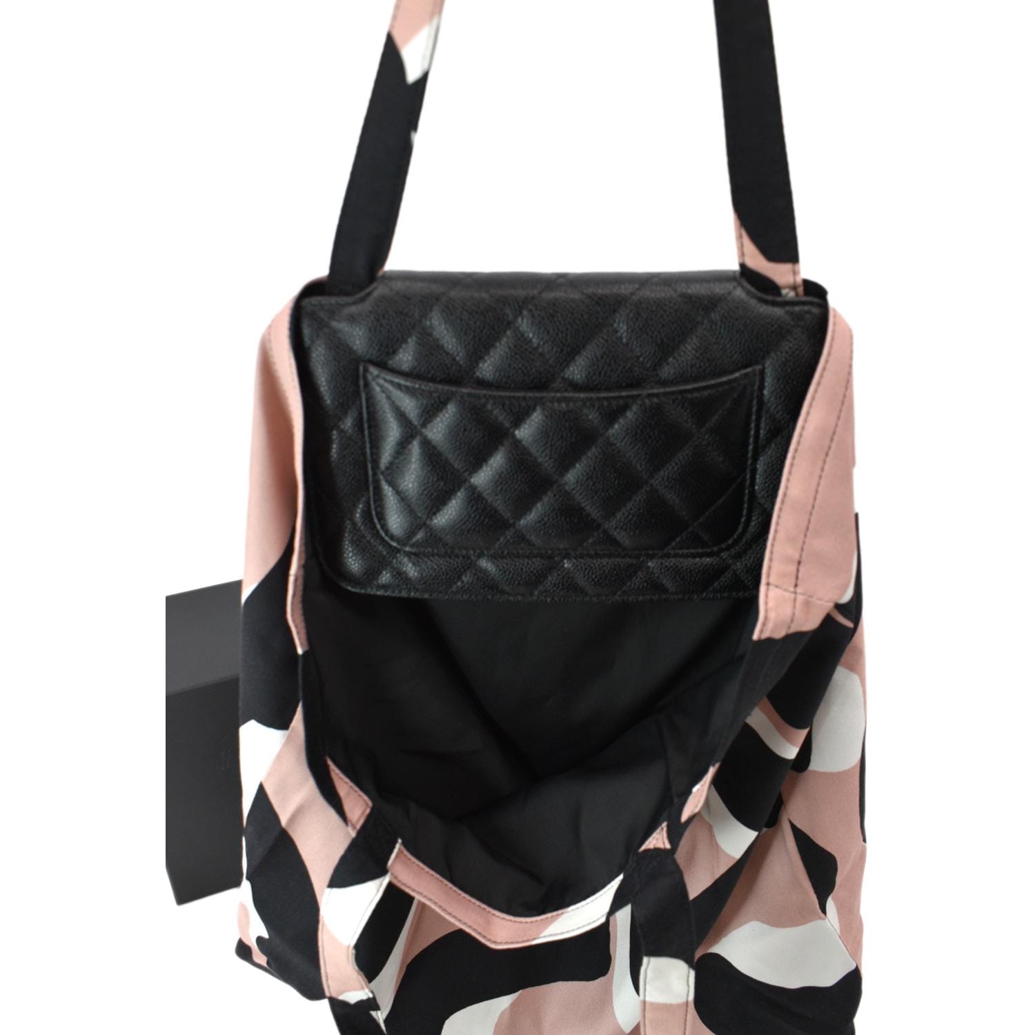 CHANEL Women 2Way Foldable Leather Satchel Crossbody Bag Black