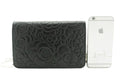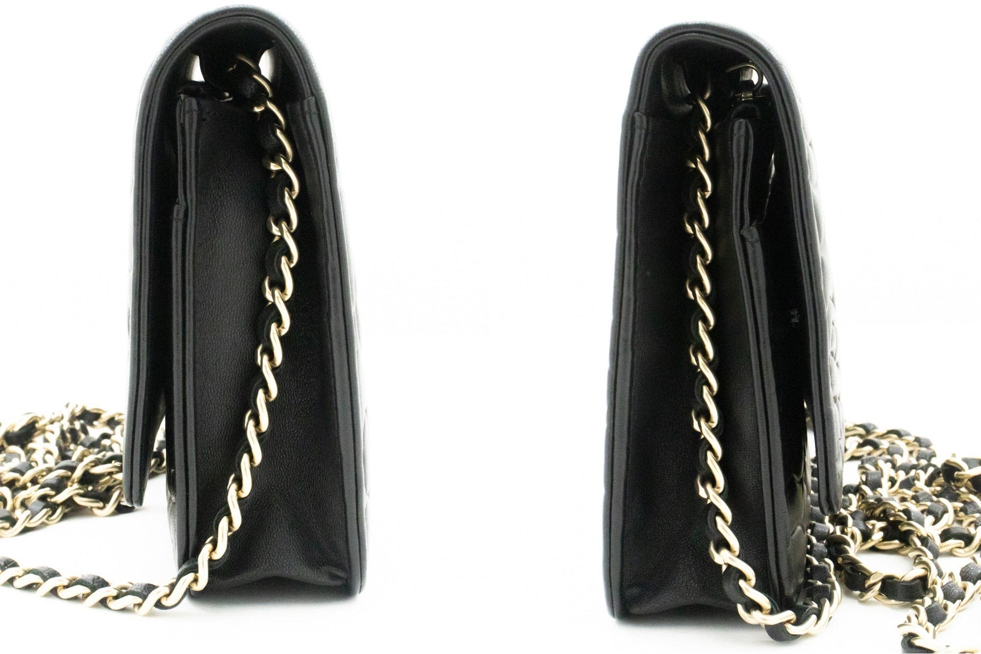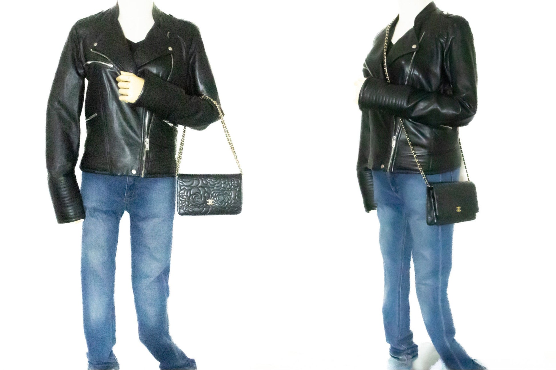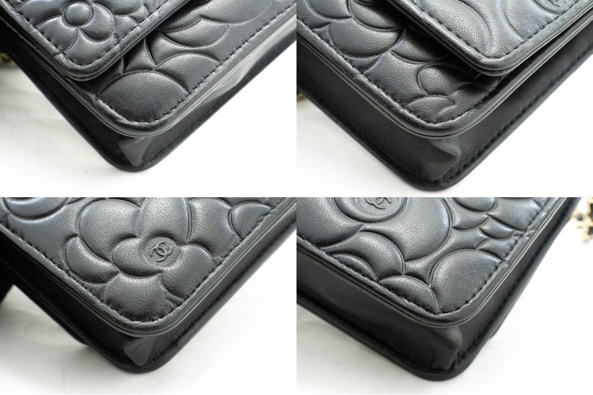 CHANEL Black Camellia Embossed Wallet On Chain WOC Shoulder Bag k53