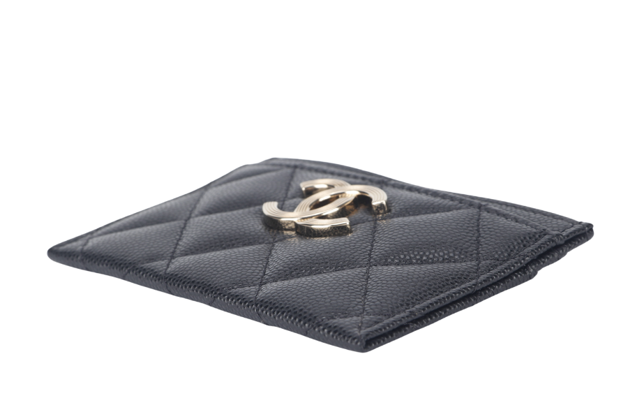 CHANEL BLACK CAVIAR CASE MICROCHIP (X6XPxxxx) LIGHT GOLD HARDWARE WITH DUST COVER AND BOX