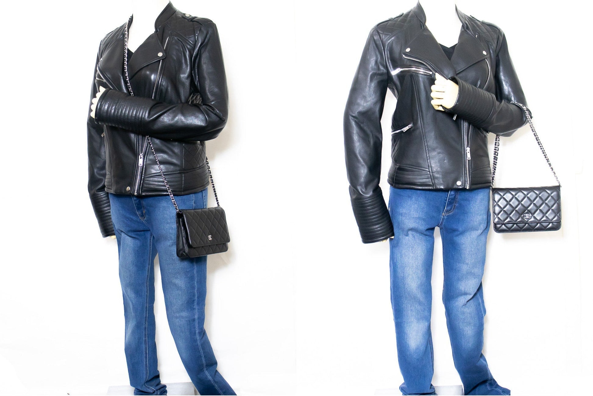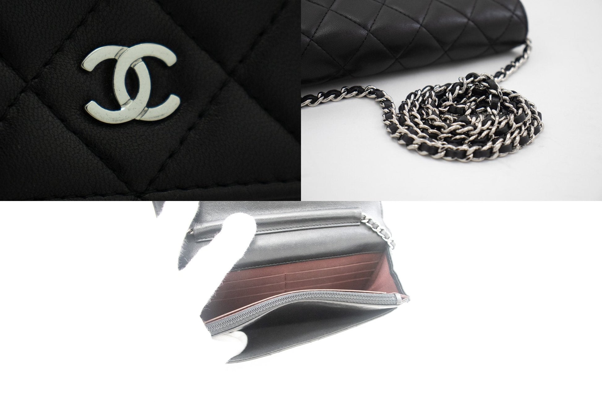 CHANEL Black Classic Wallet On Chain WOC Shoulder Bag Lambskin j35