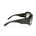 Chanel rectangle sunglasses in black/green ombre acetate with a black reptile embossed 'CC' logo on the side of the arm.