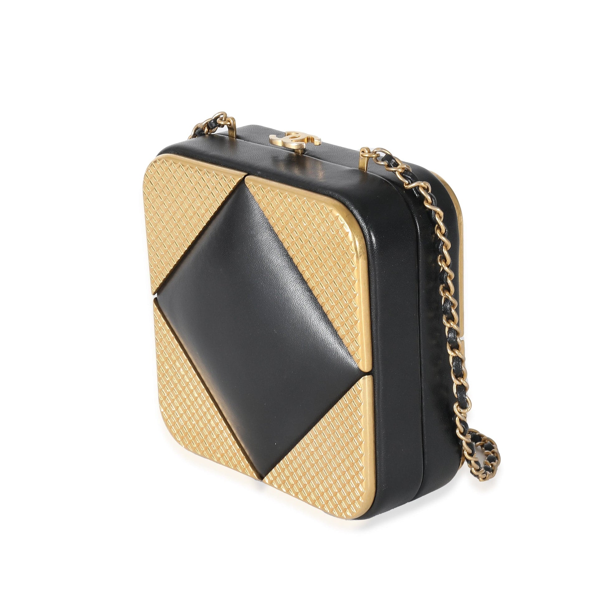 Chanel Black Lambskin Gold Metal Square CC Clutch