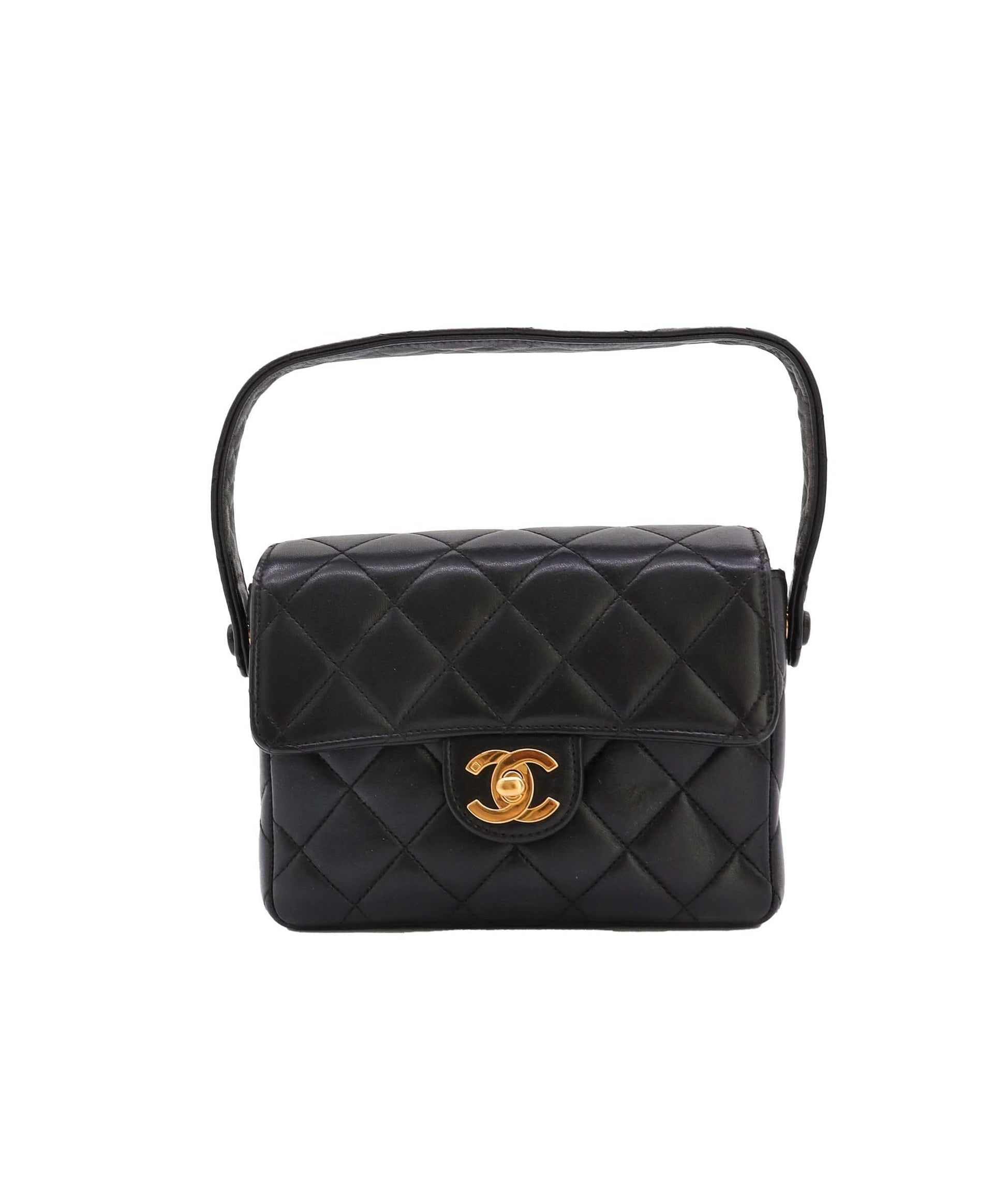 Description: Chanel Vintage Black Lambskin Mini Square Shoulder Bag