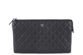 CHANEL BLACK LAMBSKIN QUILTED CLUTCH (2638xxxx) SILVER HARDWARE WITH DUST COVER AND BOX