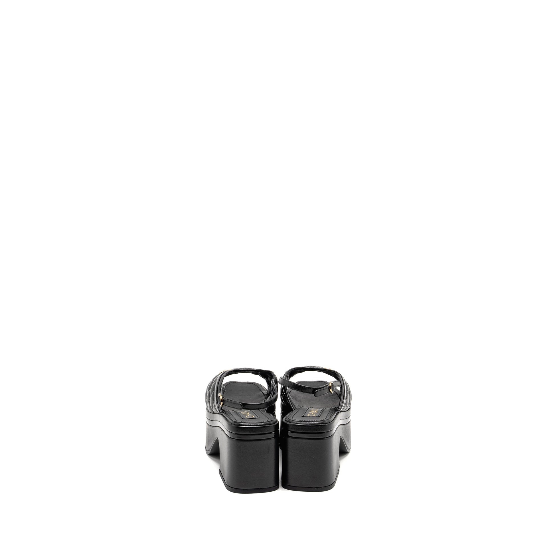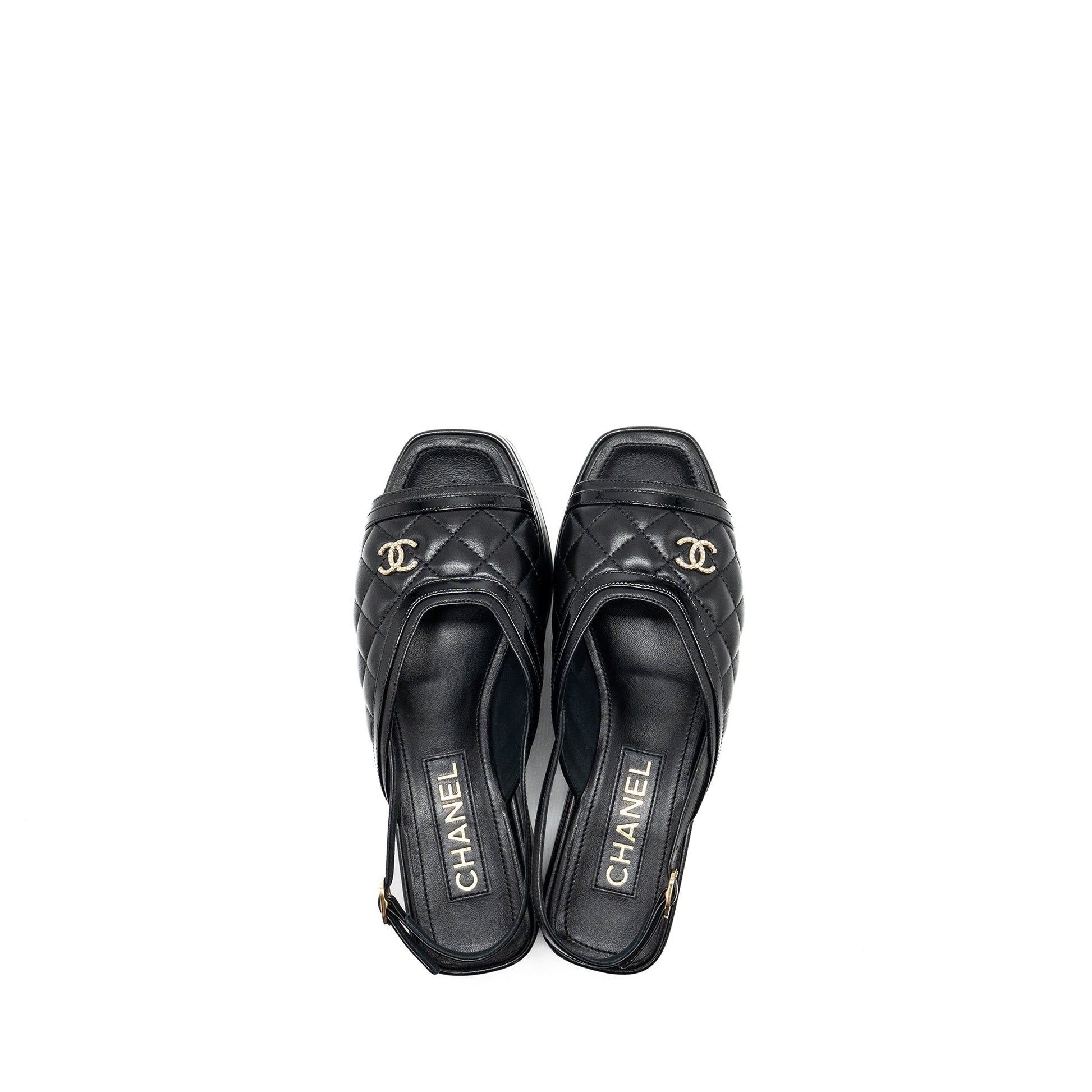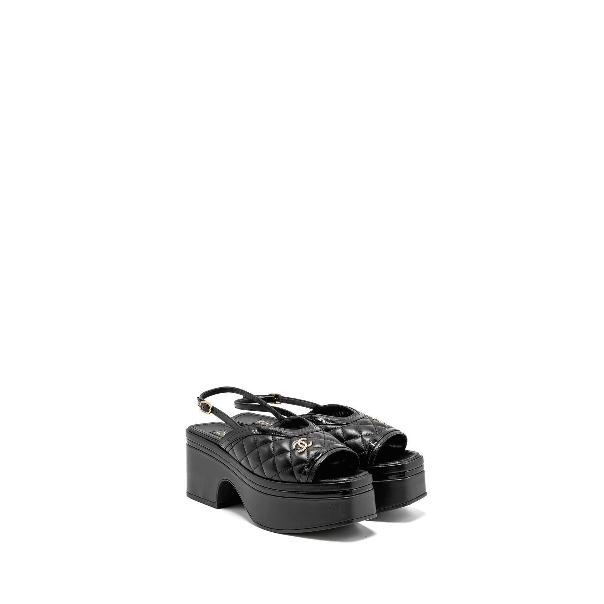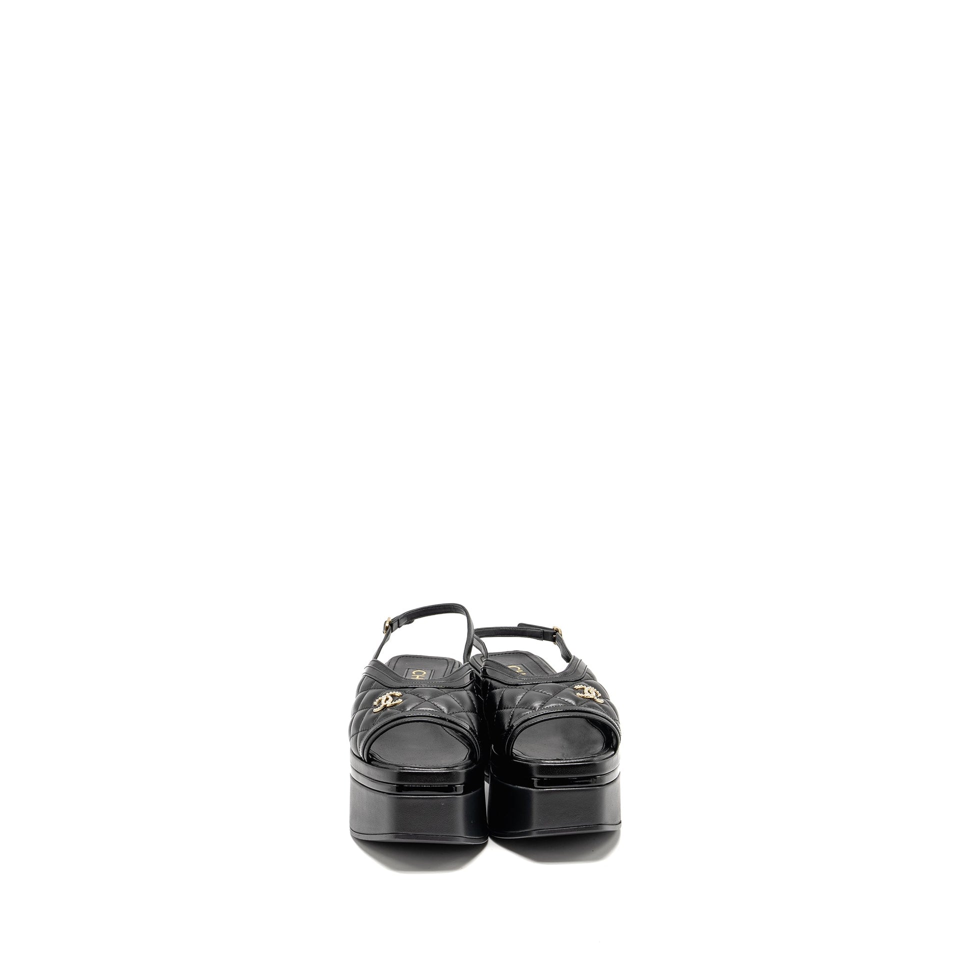 Chanel Size 37 23A Platform Sandals/Slingback Quilted Lambskin Black
