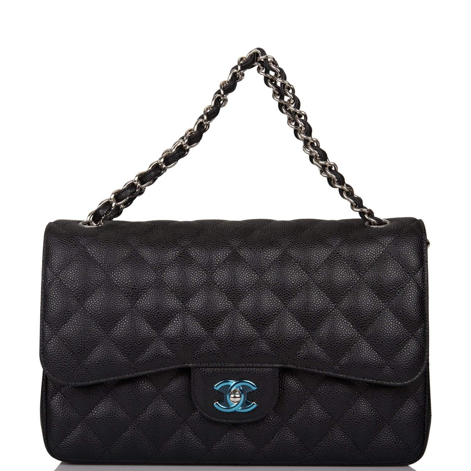 Chanel Jumbo Classic Double Flap Bag Black Caviar Silver Hardware