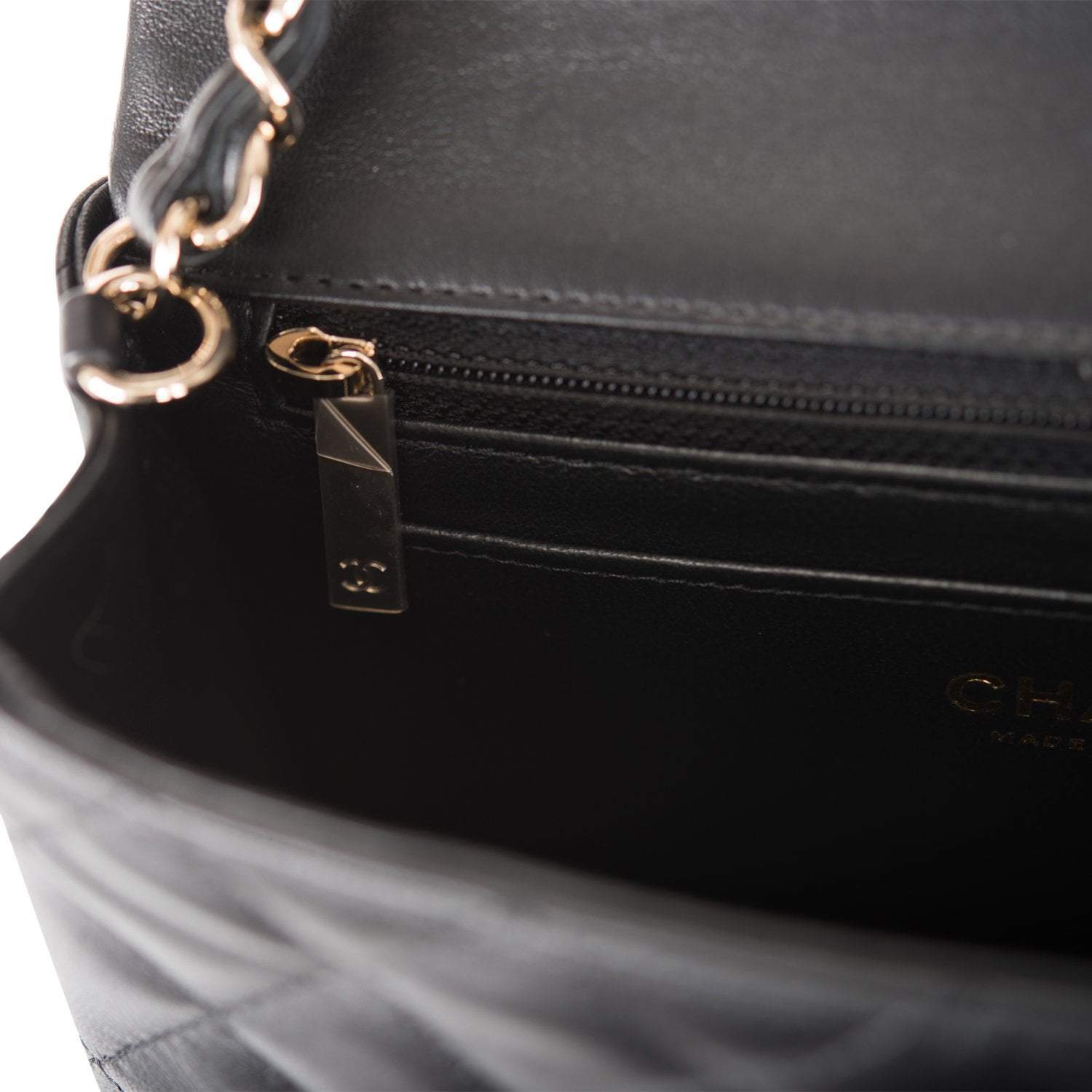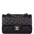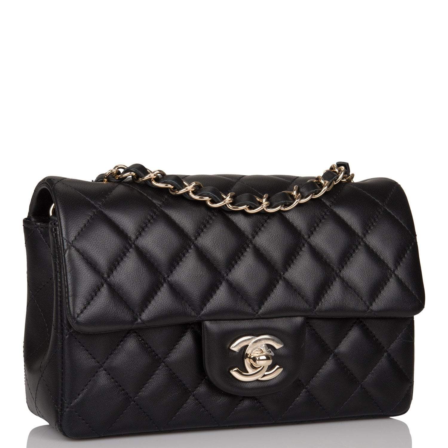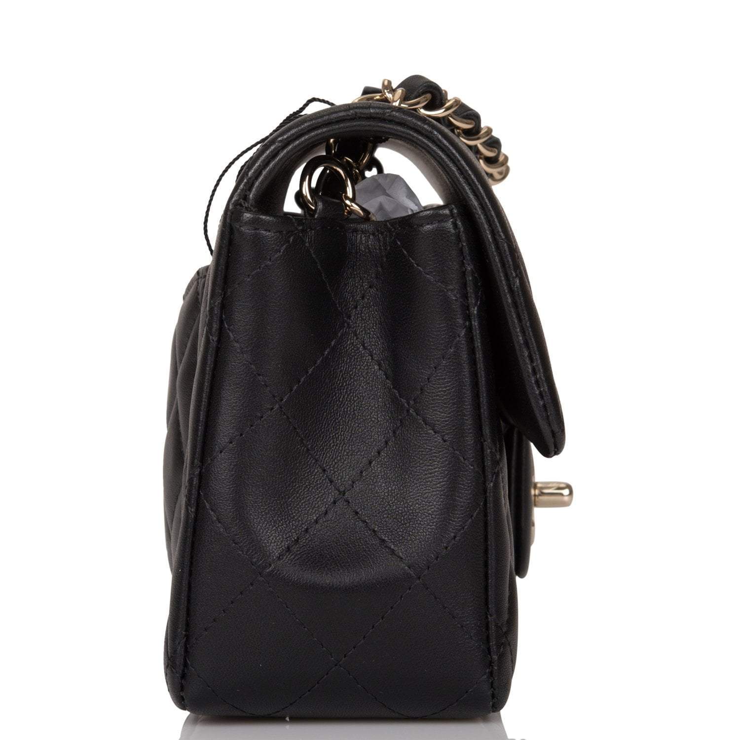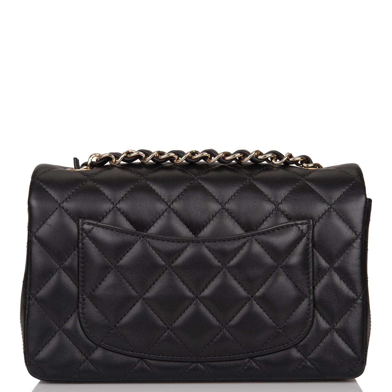 Chanel Mini Rectangular Flap Bag Black Lambskin Light Gold Hardware