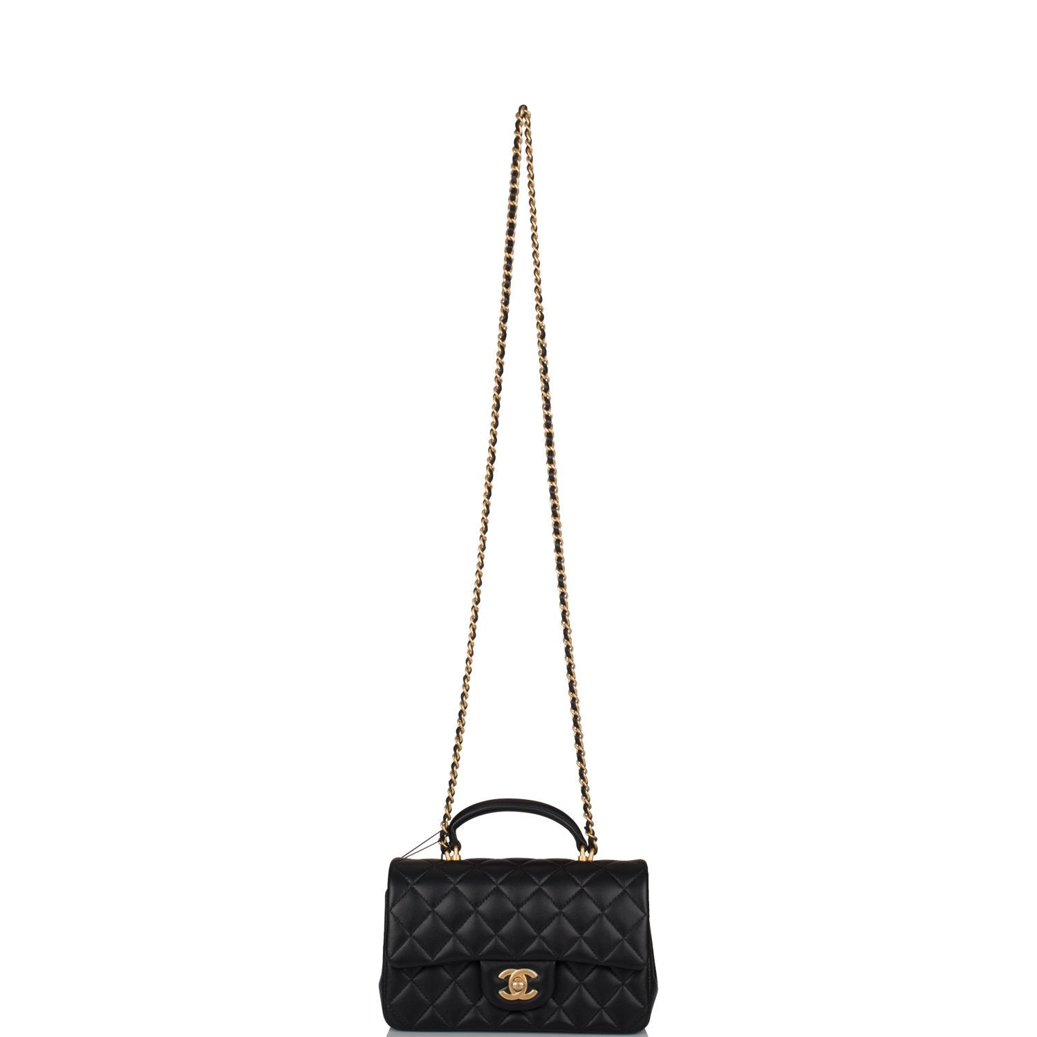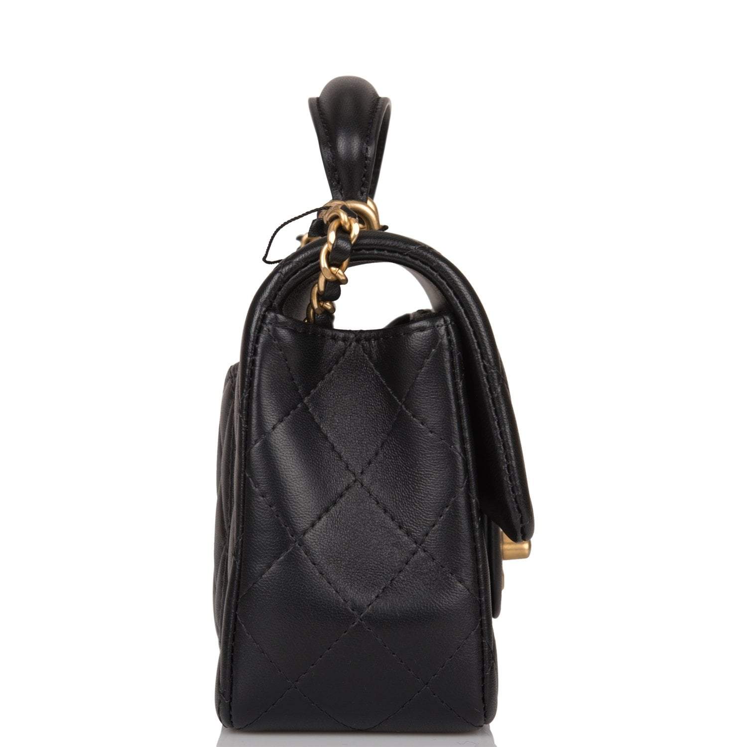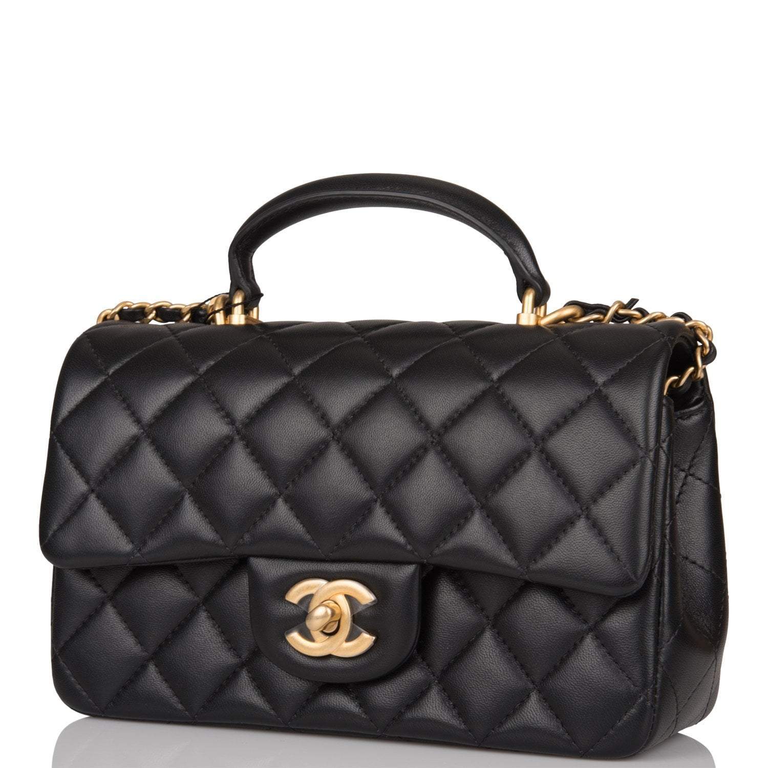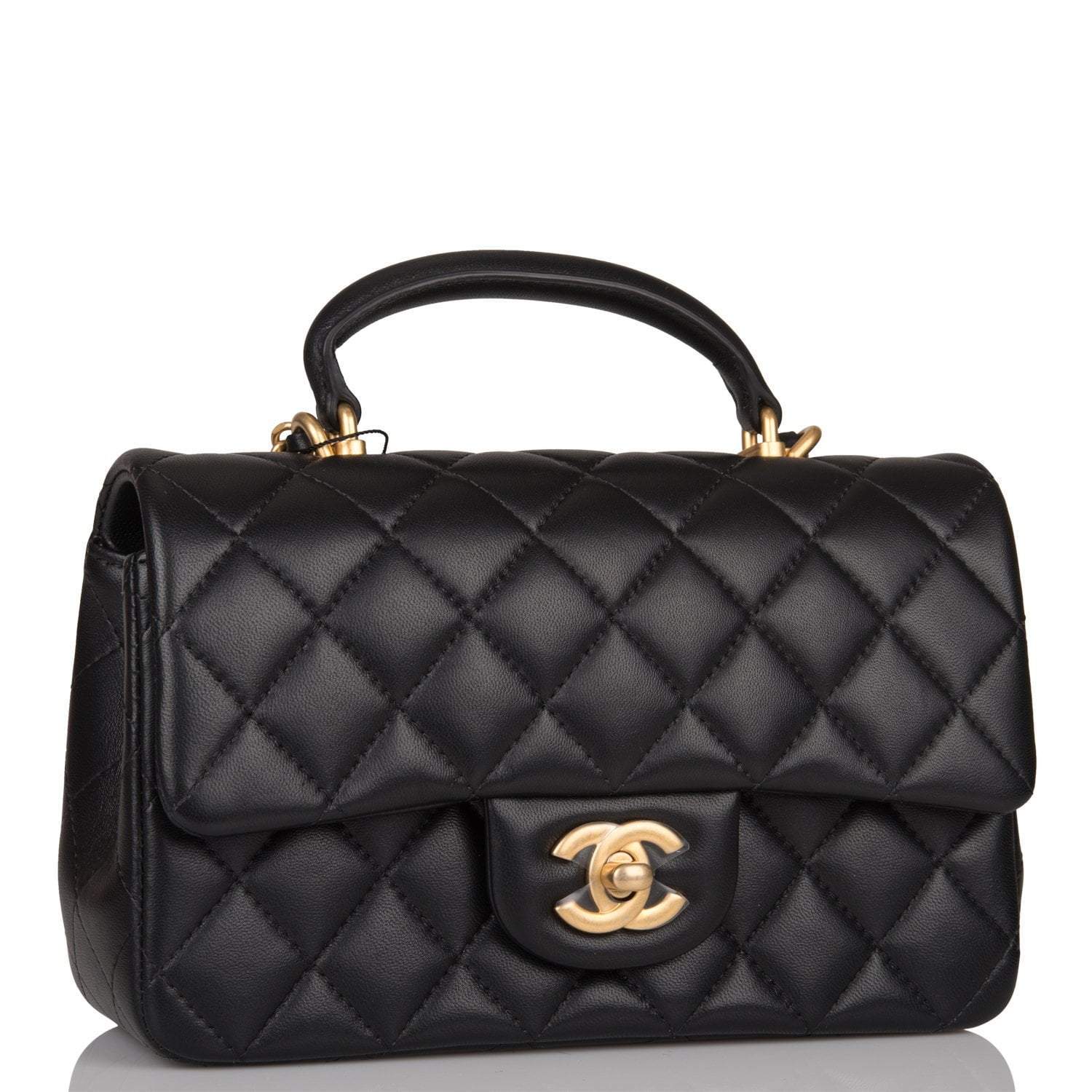 Chanel Rectangular Mini Flap Bag with Top Handle Black Lambskin Antique Gold Hardware