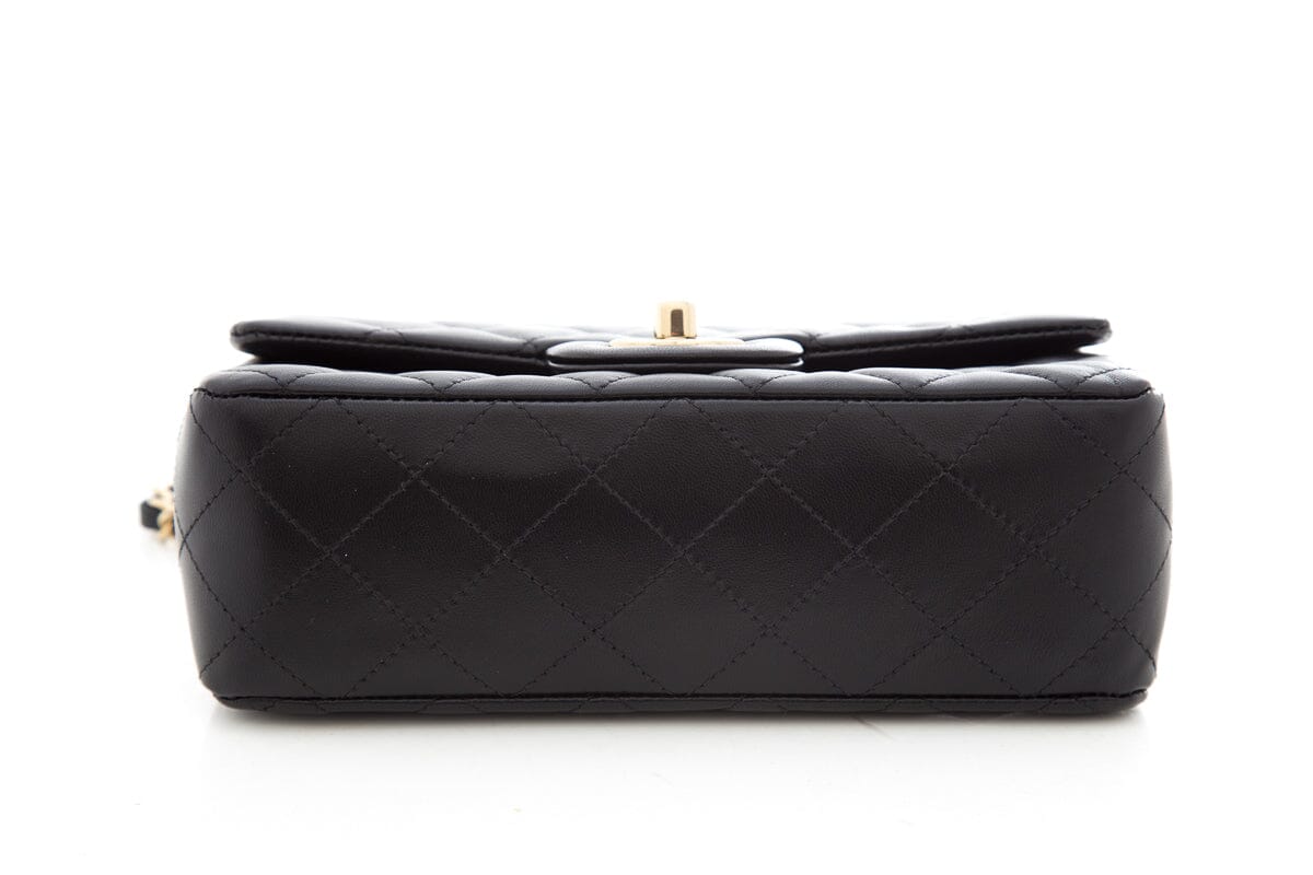 Chanel Black Single Flap 2022 Mini Lamb Leather Handbag