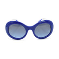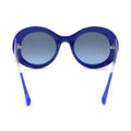Chanel round sunglasses in cobalt blue acetate with clear arms and blue hardware.
