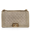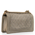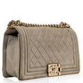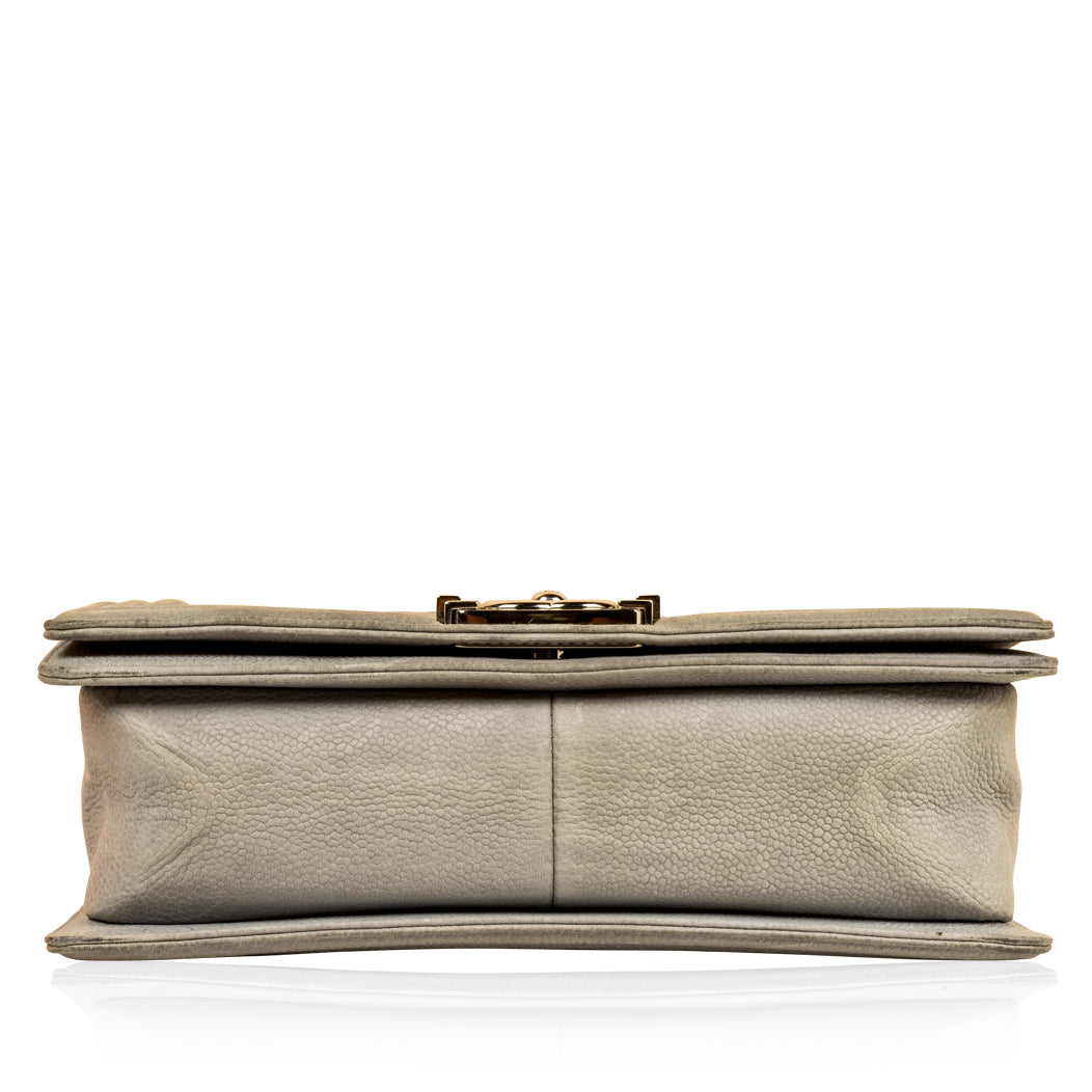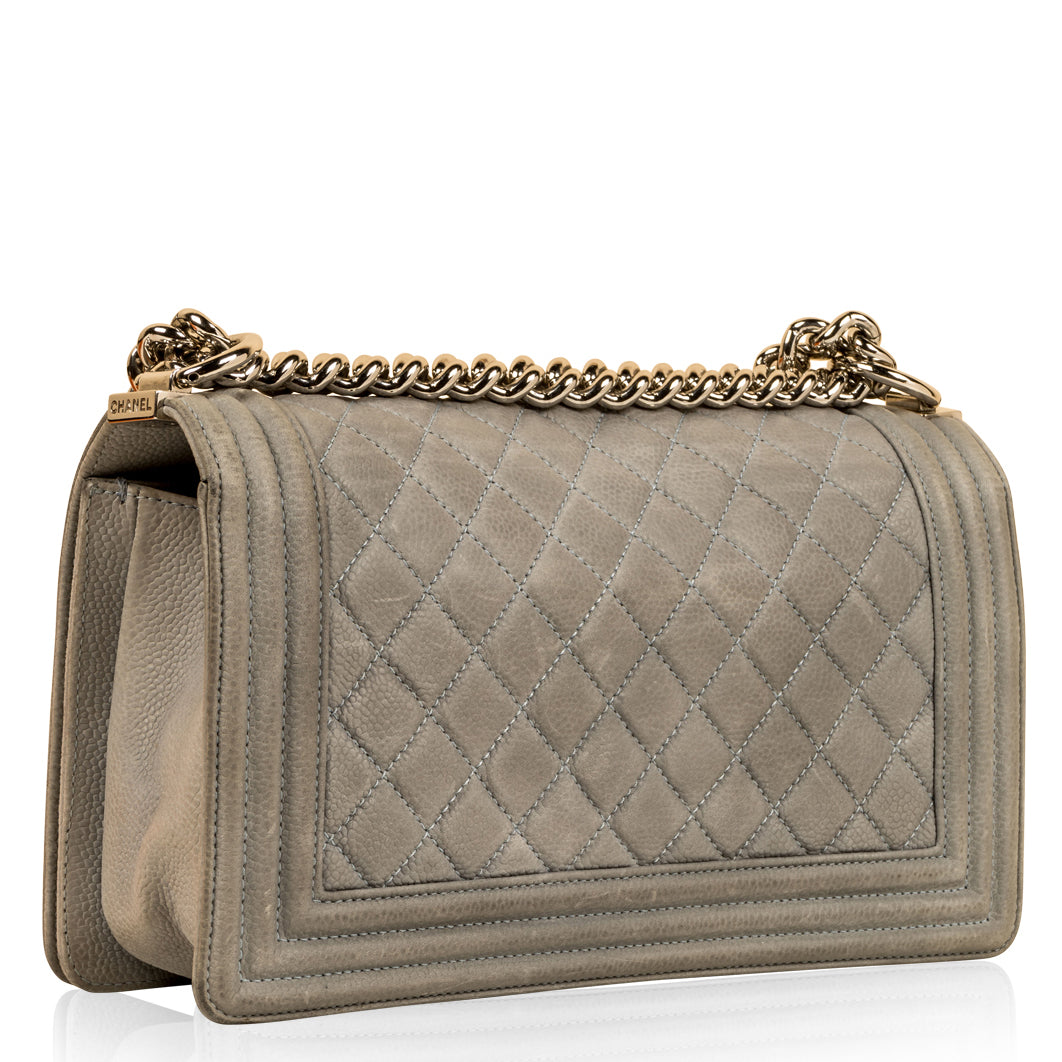 Karl Lagerfield’s vision of the renowned Boy Bag takes a beautiful turn with this seasonal matte caviar leather in a dreamy light grey hue. Crafted from light grey matte caviar and silver hardware, this effortlessly chic handbag is definitely not one for the faint hearted. Colourful, joyous and a true statement piece, this mixed-material Boy bag is an absolute must-have for any woman with a bold sense of style. With its tartan pattern and antique gold hardware, this Chanel Boy is fun and playful while remaining a timeless classic. The perfect monochrome accessory to wear casually with almost any outfit at all.