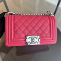 Chanel Boy Small - Hot Pink Quilted Caviar Grained Calfskin with Silver Hardware Series 25