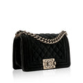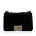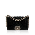 An absolute must-have for any fashion lover with a soft spot for Chanel, it basically goes without saying that this bag is a necessity in any luxury handbag collection. The Boy bag is not only an iconic piece that will remain in style forever, but it's the perfect balance between classic elegance and modern edge. Wear this bag with absolutely anything in your wardrobe, from casual jeans and a basic tee to a dressy skirt and blazer - you'll be sure to compliment any look with the Small Boy by your side. Carefully crafted from black velvet and accentuated by ruthenium hardware, this bag is the ideal investment for any modern young woman with a fashion forward sense of style and a love for classic luxury. A well-worthy investment piece that will never decrease in value, this Boy is one you’ll never want to break up with.