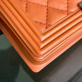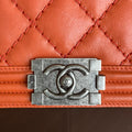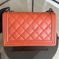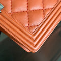 Boy Calfskin New Medium 28CM Quilted Orange Leboy RSHW No 18