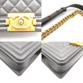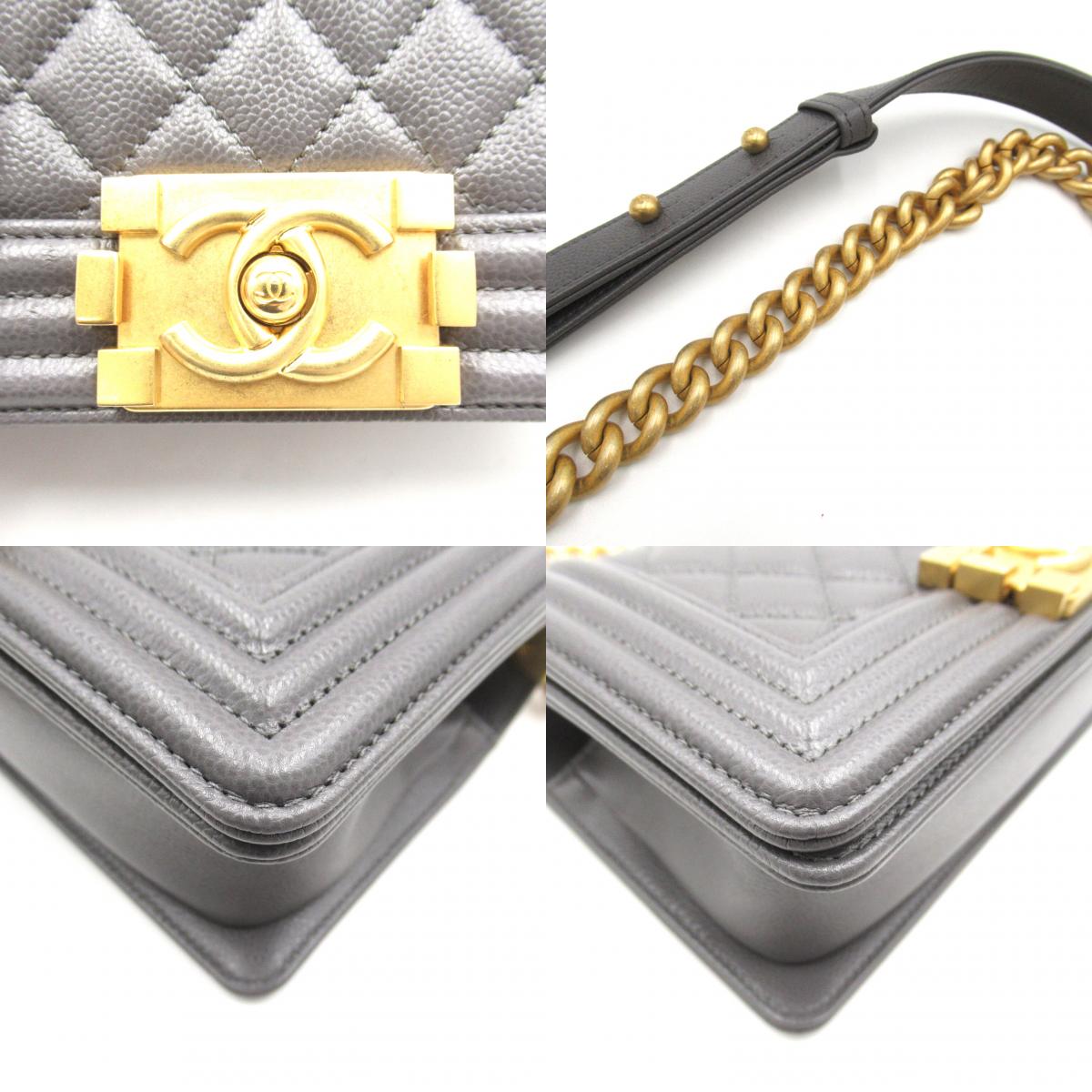 Chanel Boy Caviar Chain Shoulder Bag Gray