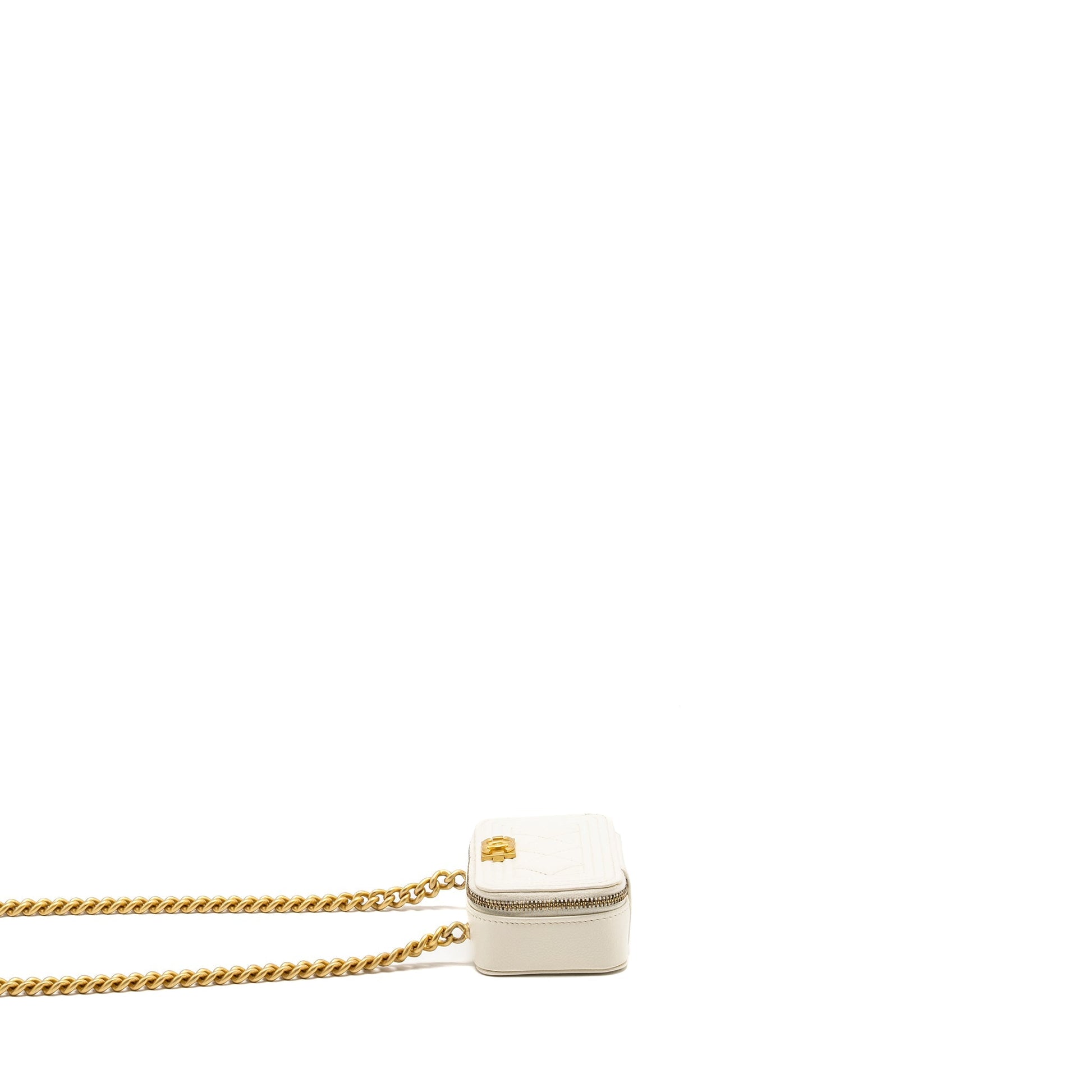 Chanel Boy Chain Clutch Caviar White GHW (Microchip)