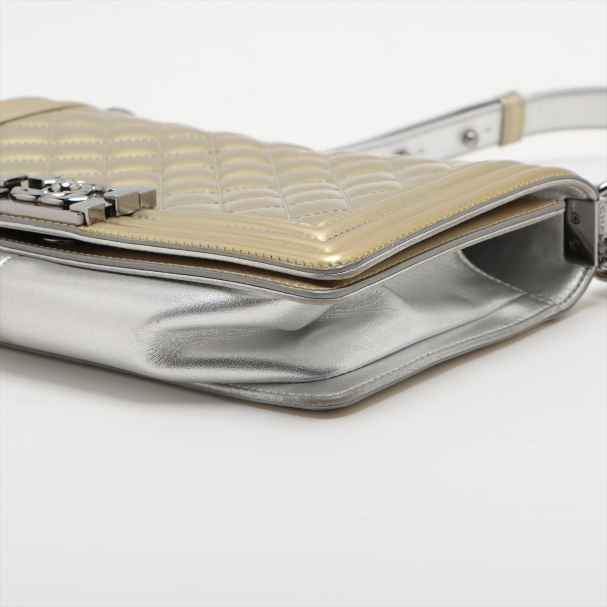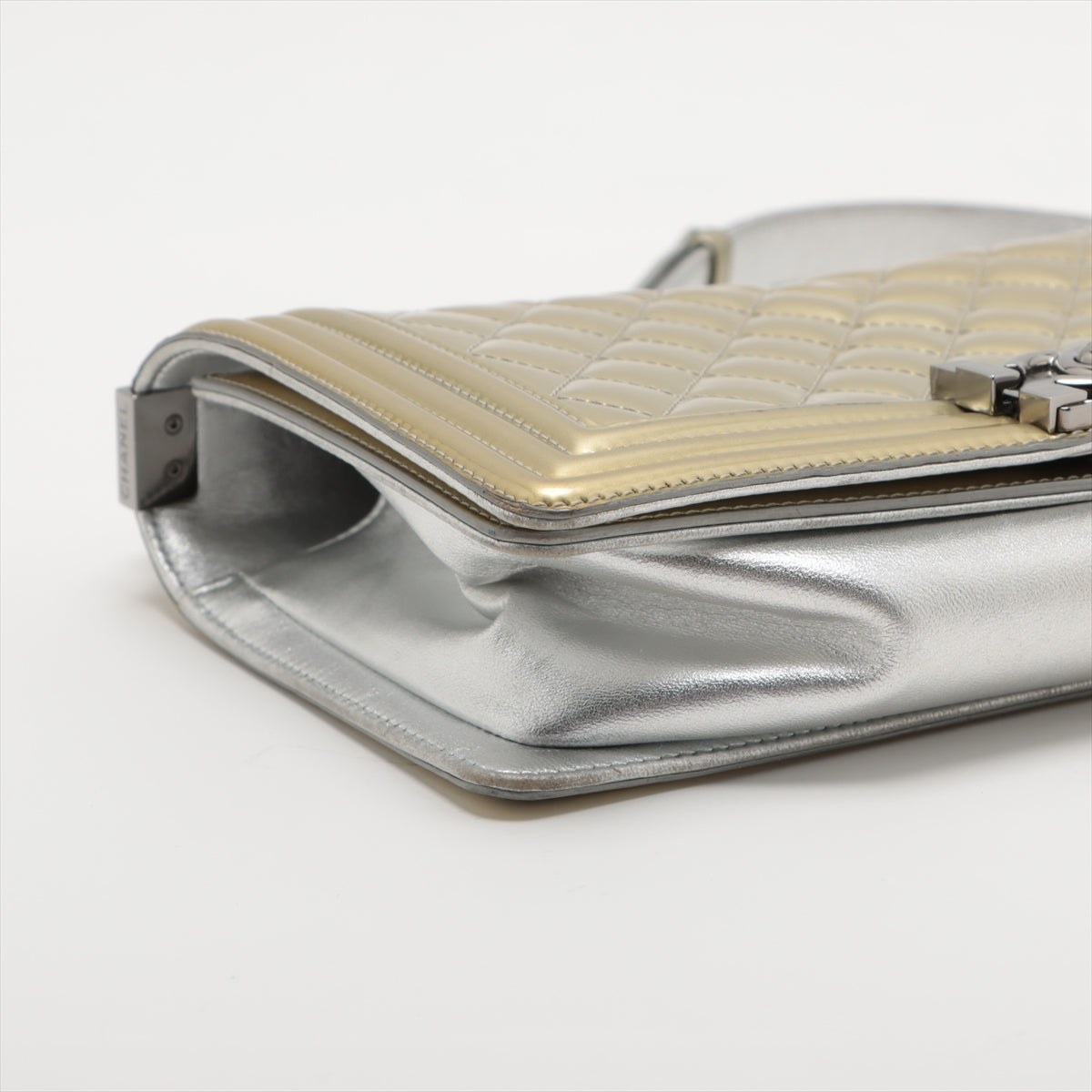 Chanel Boy Chanel 25 Patent Leather Chain Shoulder Bag G x Silver Silver 17 A67086