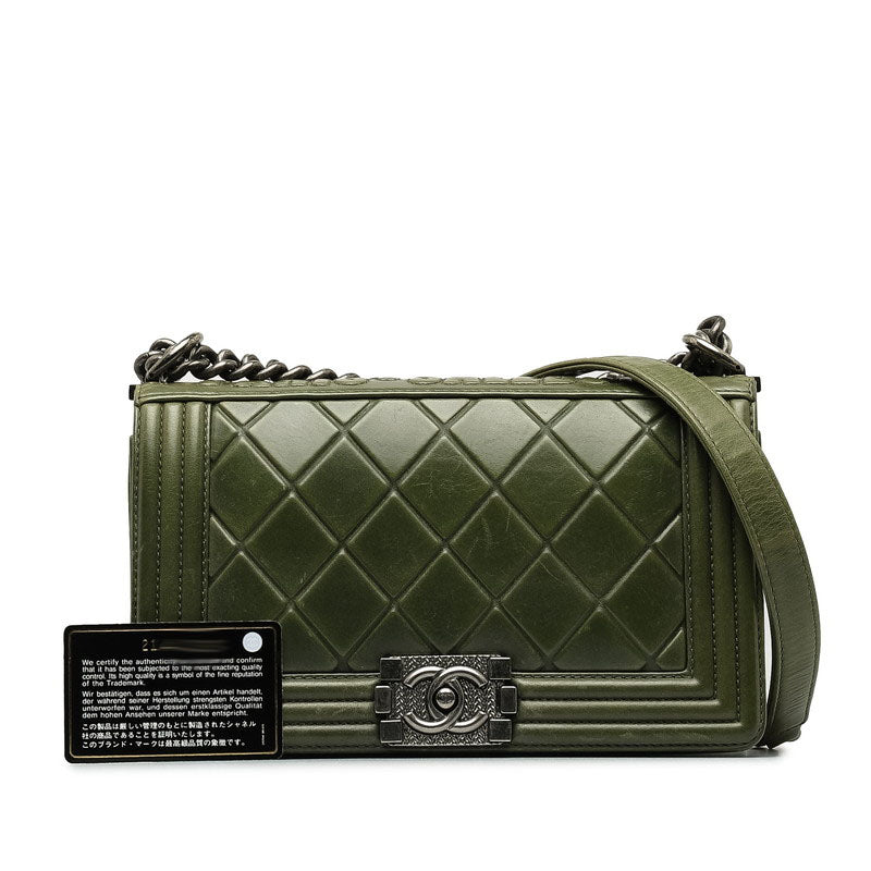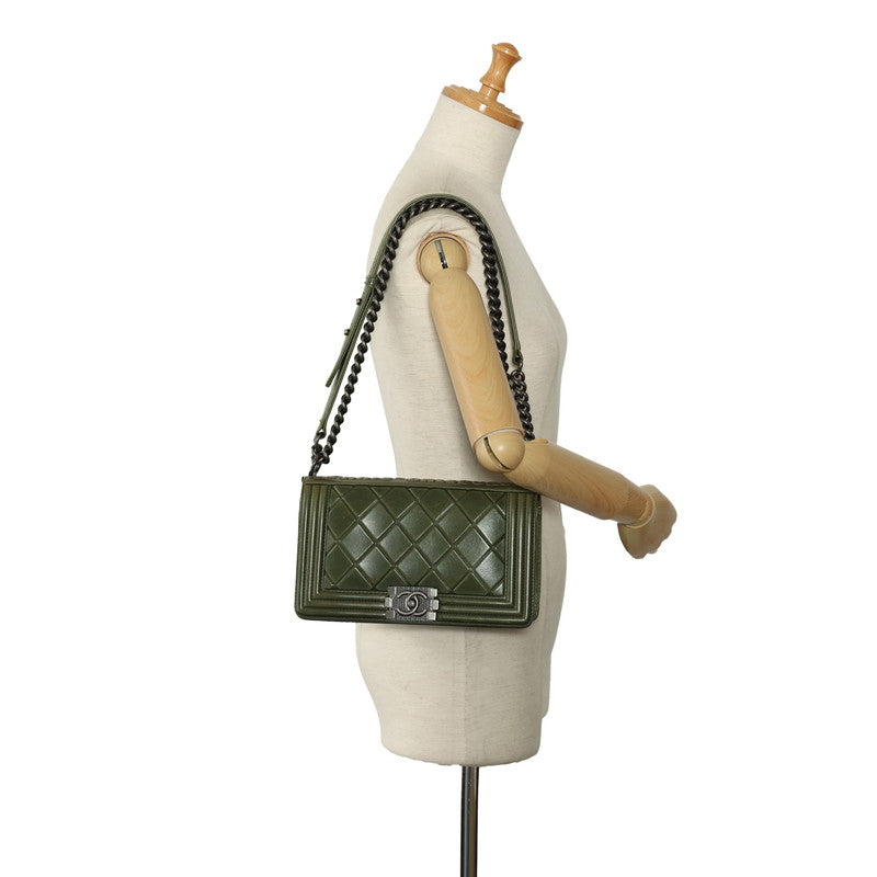 Item name : Chanel Boy Shoulder Bag Green Leather