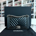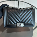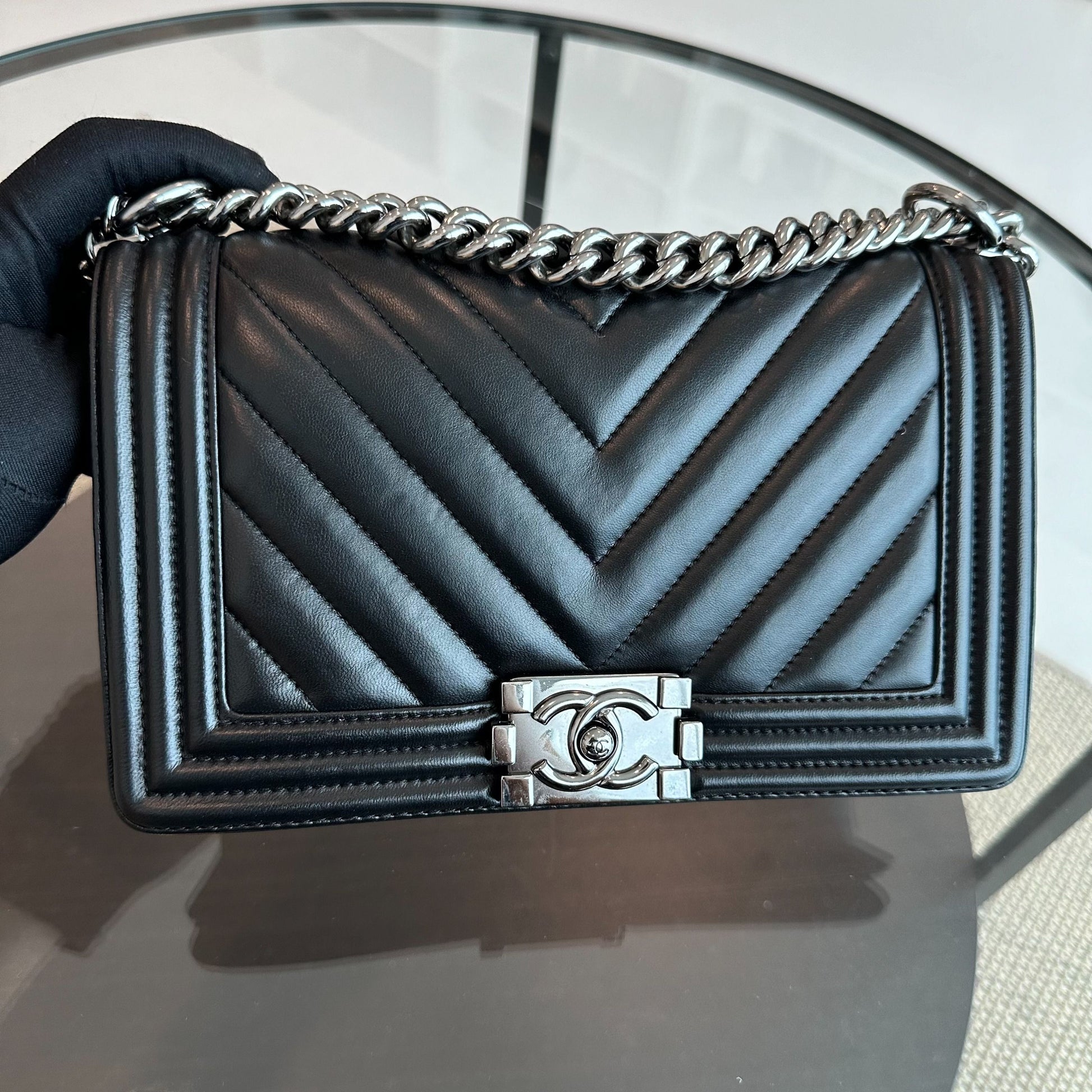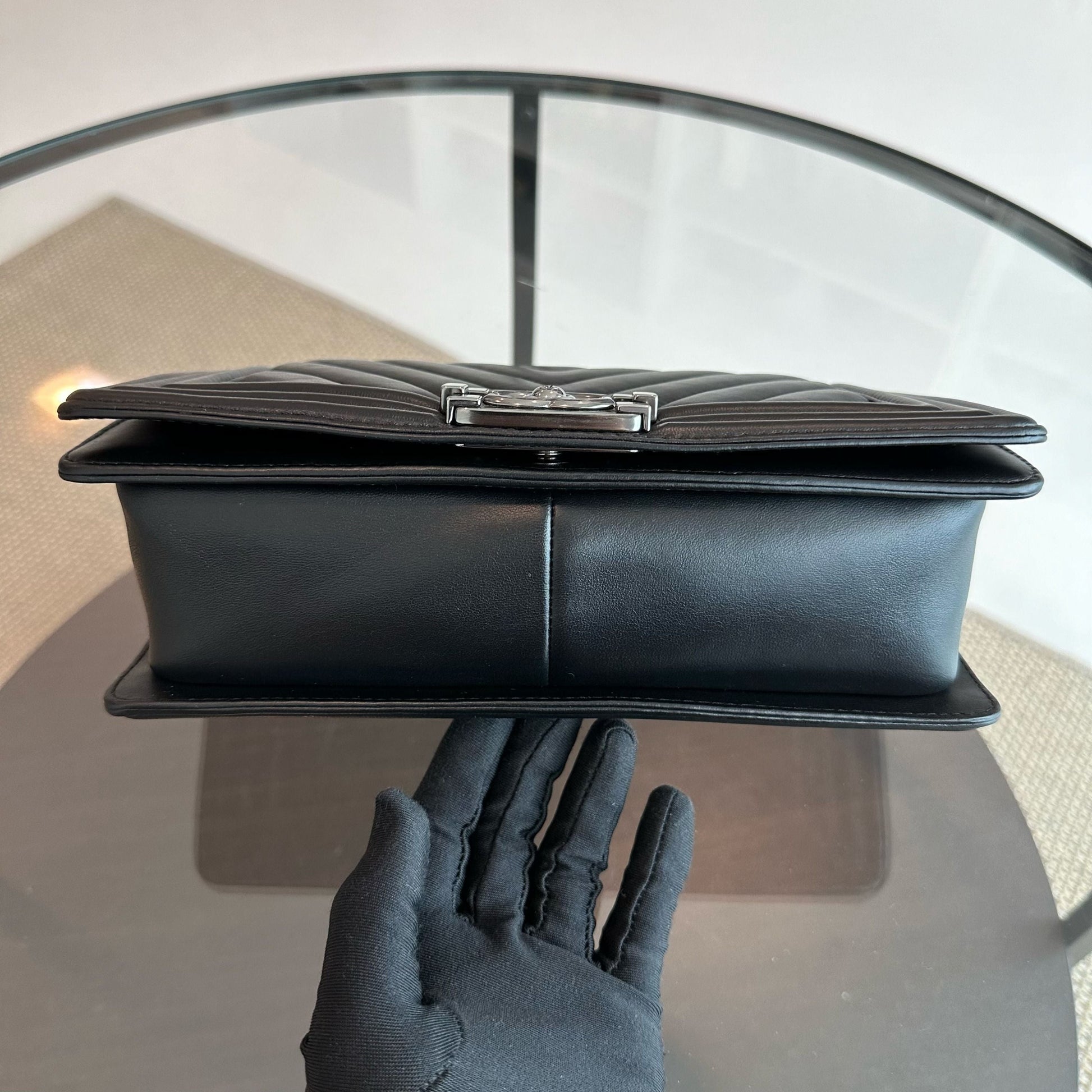 Boy Chevron Old Medium 25CM Lambskin Leboy Black SHW No 26