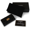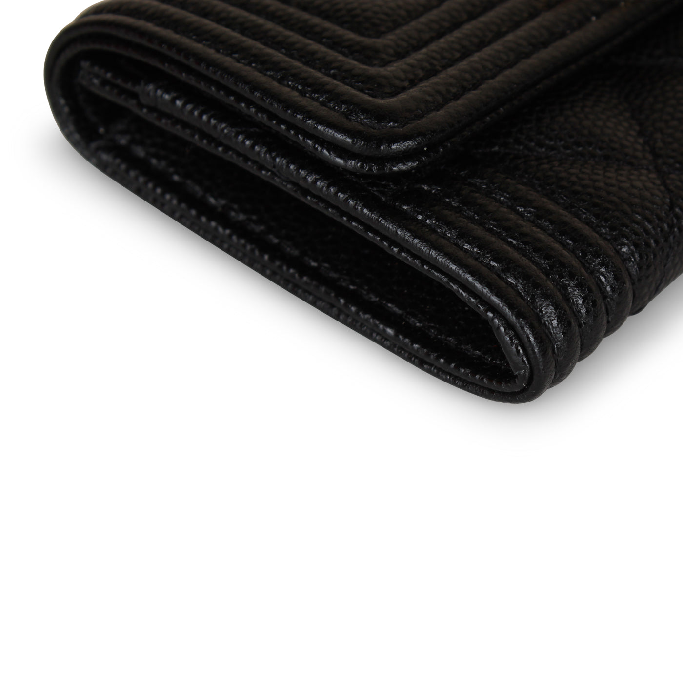 Carefully crafted in Chanel's beautiful black caviar leather and ruthenium tone hardware combination, this stunning boy wallet is an absolute must-have for any woman with a love for luxury and a soft spot for Chanel. With a slight undertone of shine, this sparkly little gem is a classic piece you'll have for life. An accessory you'll never fall out of love with, investing in anything Chanel is always a New idea due to the fact that they rarely cease to decrease in value. Always sleek, always stylish, this little Chanel change purse is a timepiece you won't regret.