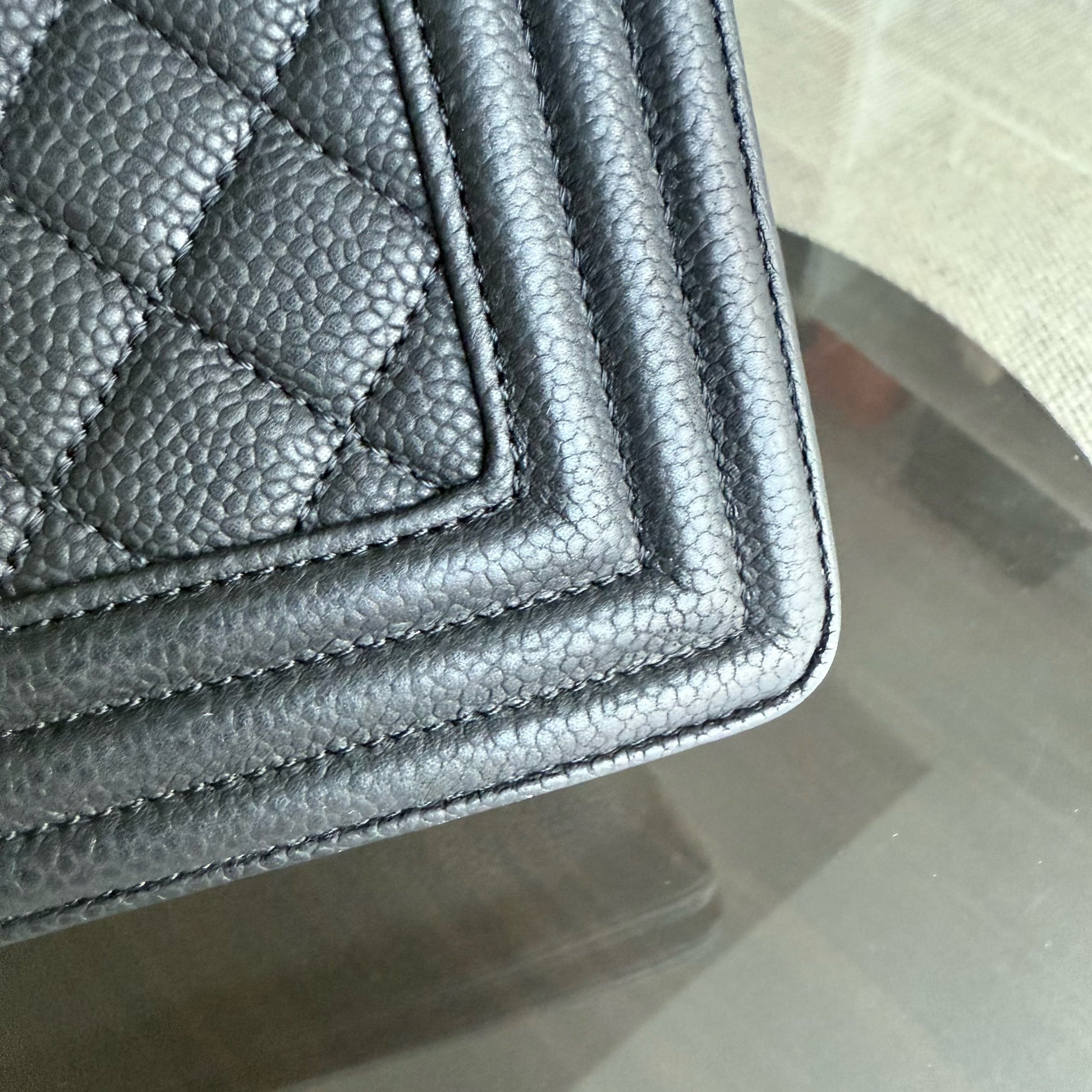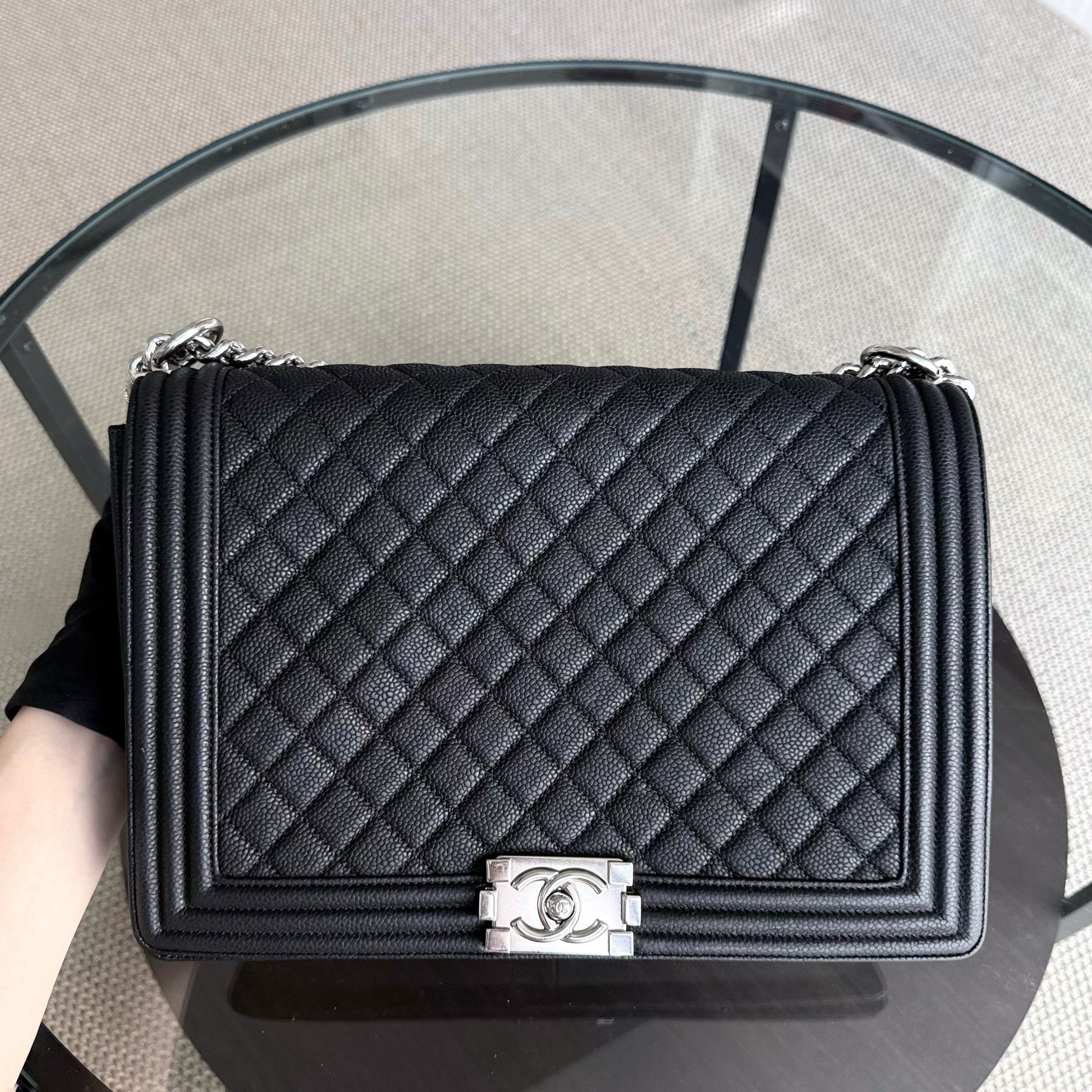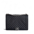 Chanel Boy Large - Caviar Quilted Grained Calfskin Black Silver Hardware Series 17
