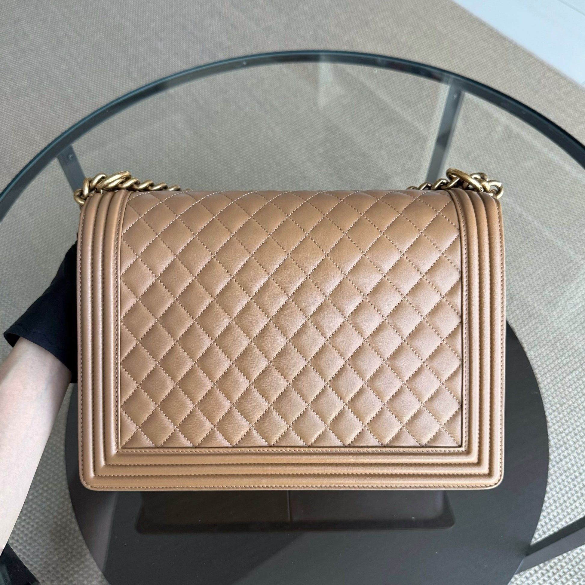 Chanel Boy Large - Quilted Lambskin Brown Gold Hardware Series 19