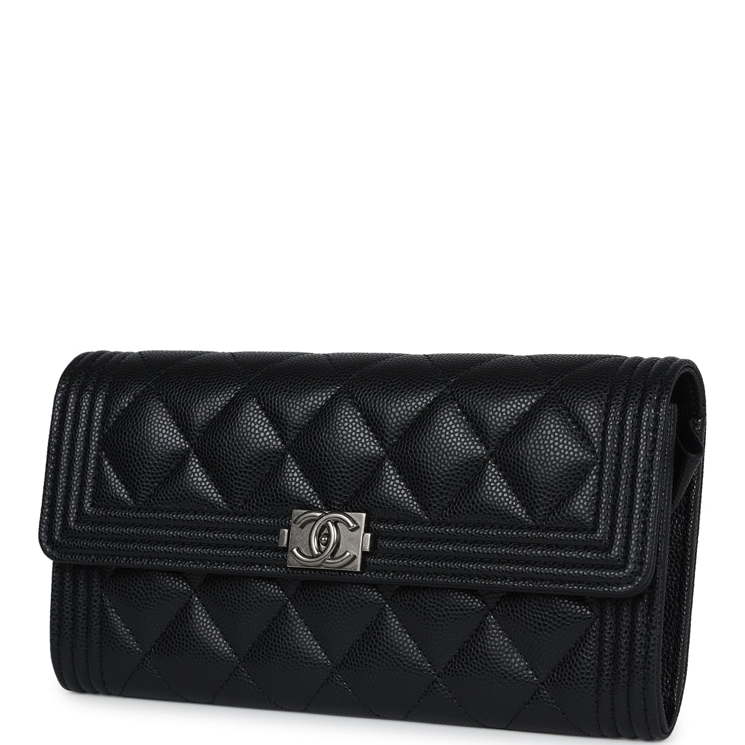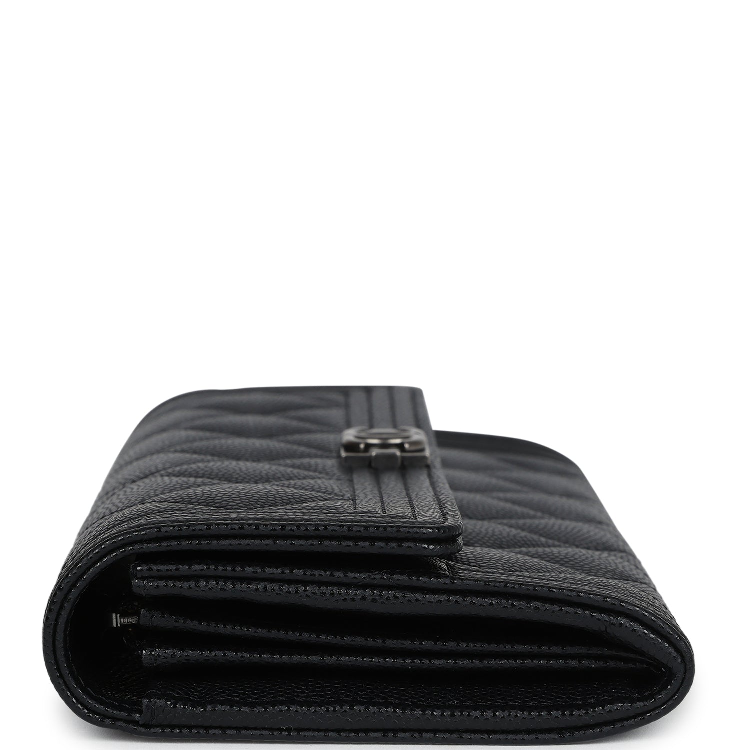 Chanel Boy Long Flap Wallet Black Caviar Aged Ruthenium Hardware