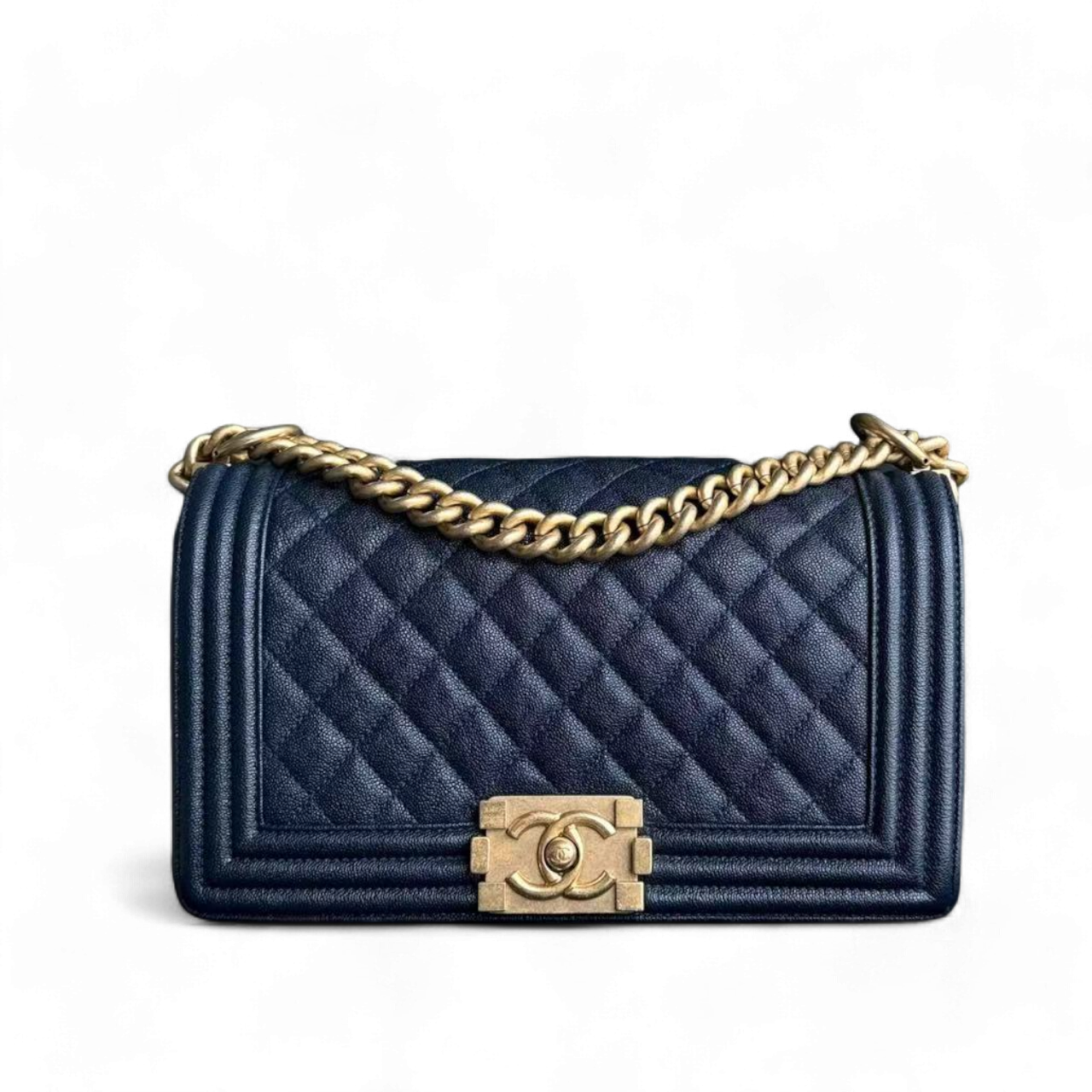 Chanel Boy Medium - 25CM Caviar Quilted Dark Navy Blue Gold Hardware