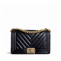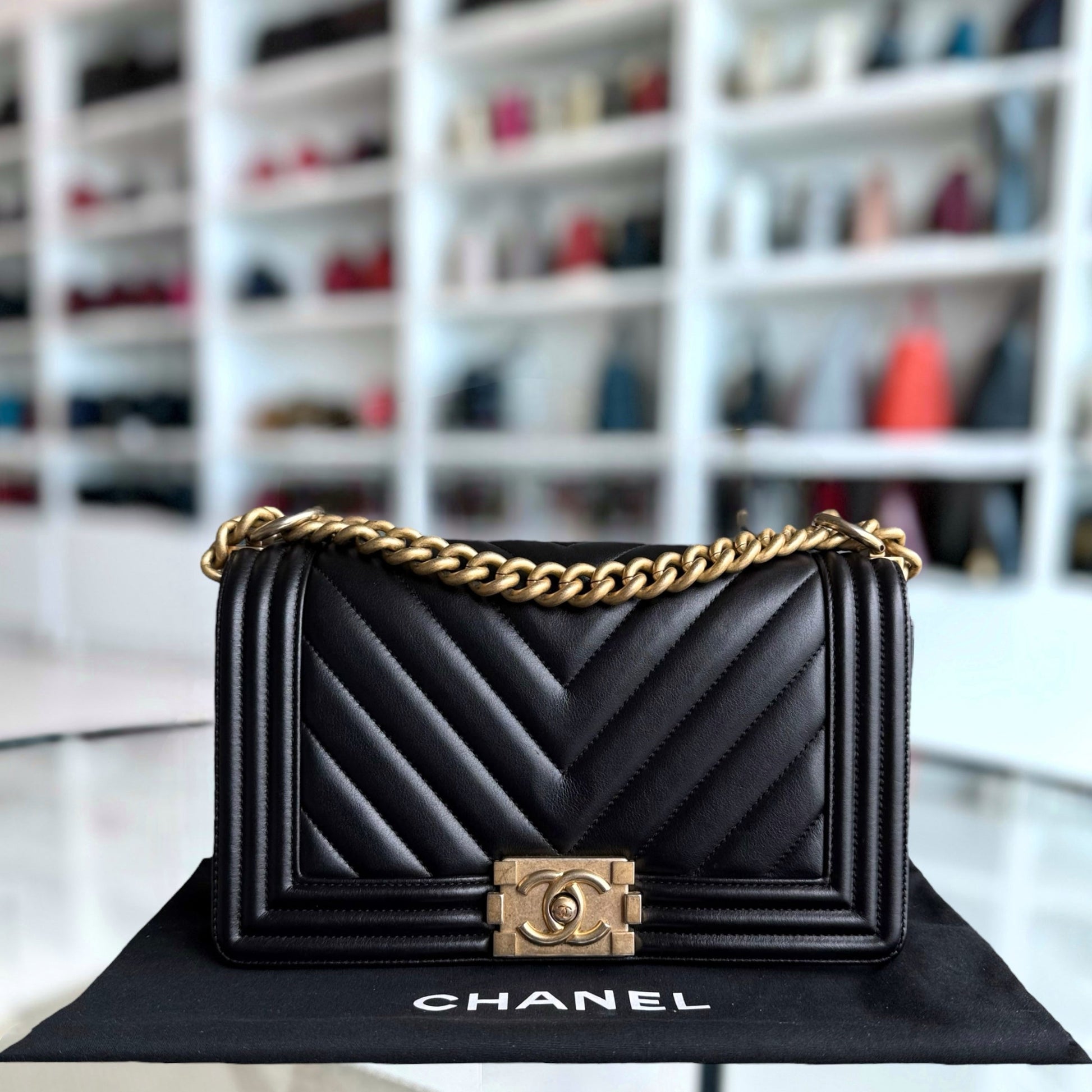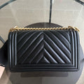 Chanel Boy Medium - 25CM Chevron Calfskin Black Aged Gold Hardware Series 25
