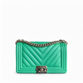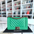 Chanel Boy Medium - 25CM Chevron Calfskin Green Gold Hardware Series 23