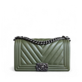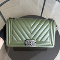 Chanel Boy Medium - 25CM Chevron Calfskin Green Ruthnium Silver Hardware Series 20