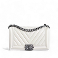 Chanel Boy Medium - 25CM Chevron Calfskin Cream White Ruthenium Silver Hardware Series 20