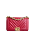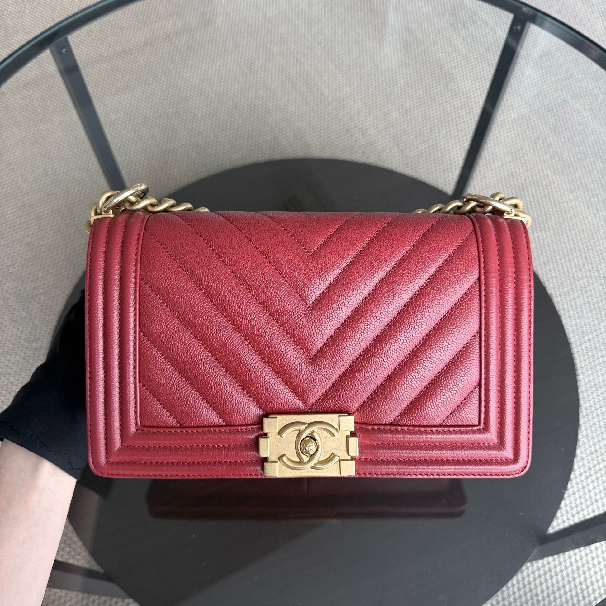 Chanel Boy Medium - 25CM Chevron Red Gold Hardware Series 25