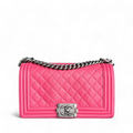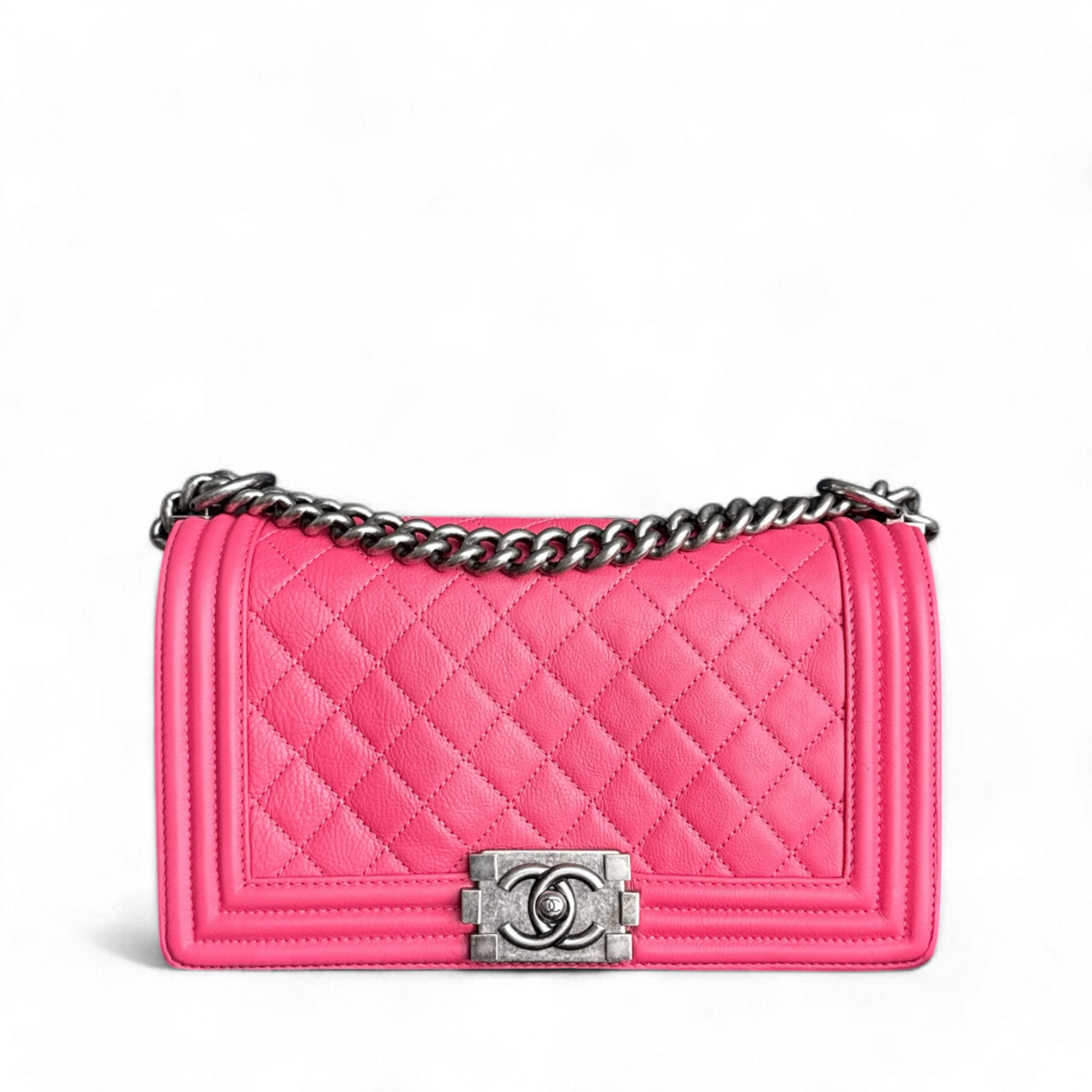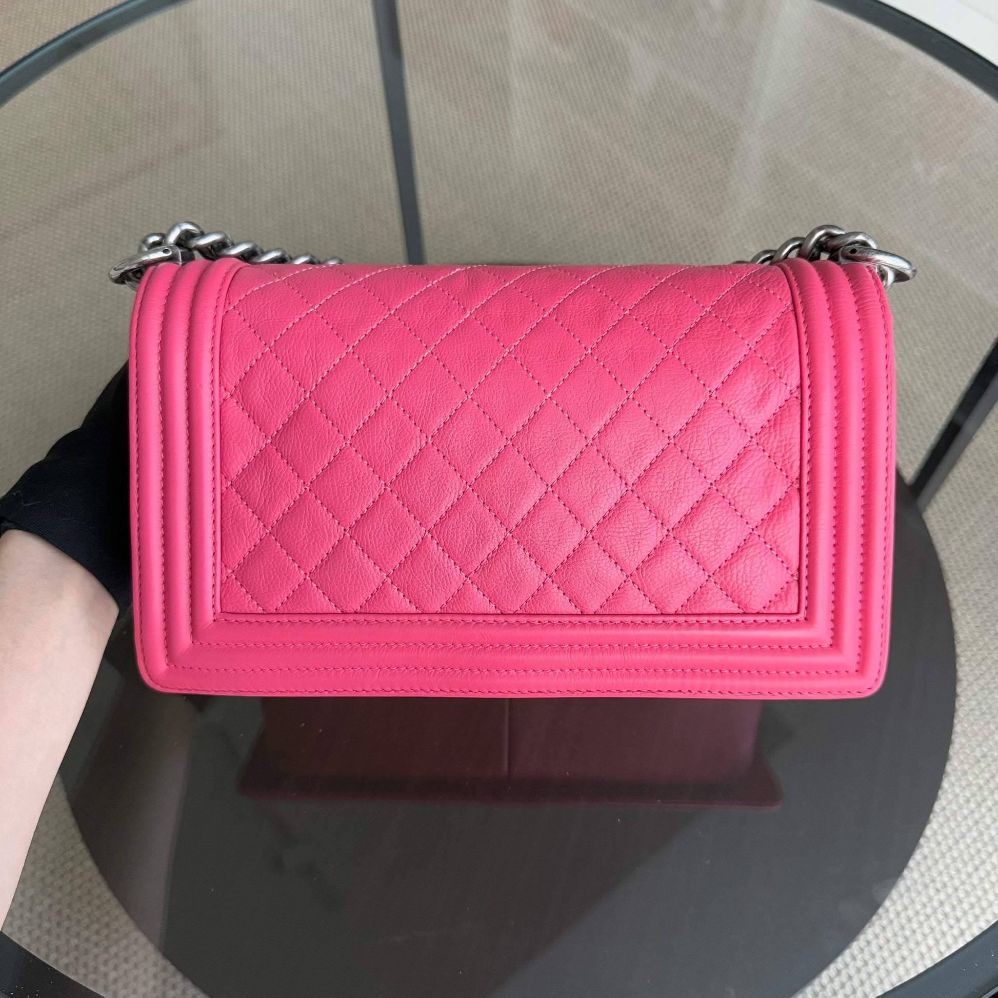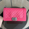 Chanel Boy Medium - 25CM Calfskin Quilted Hot Pink Ruthnium Silver Hardware Series 17