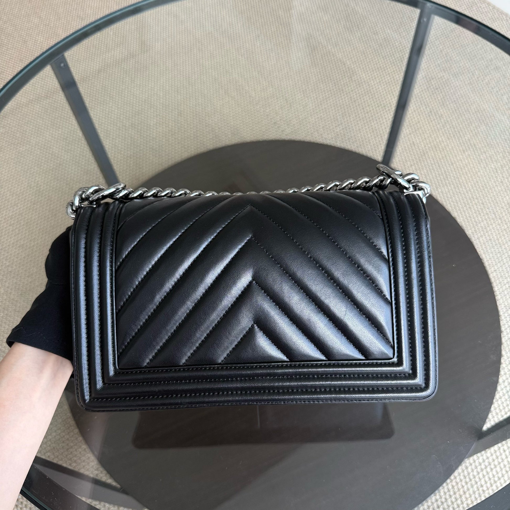 Chanel Boy Medium - 25CM Quilted Calfskin Black Dark Silver Hardware Series 25