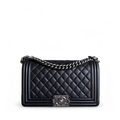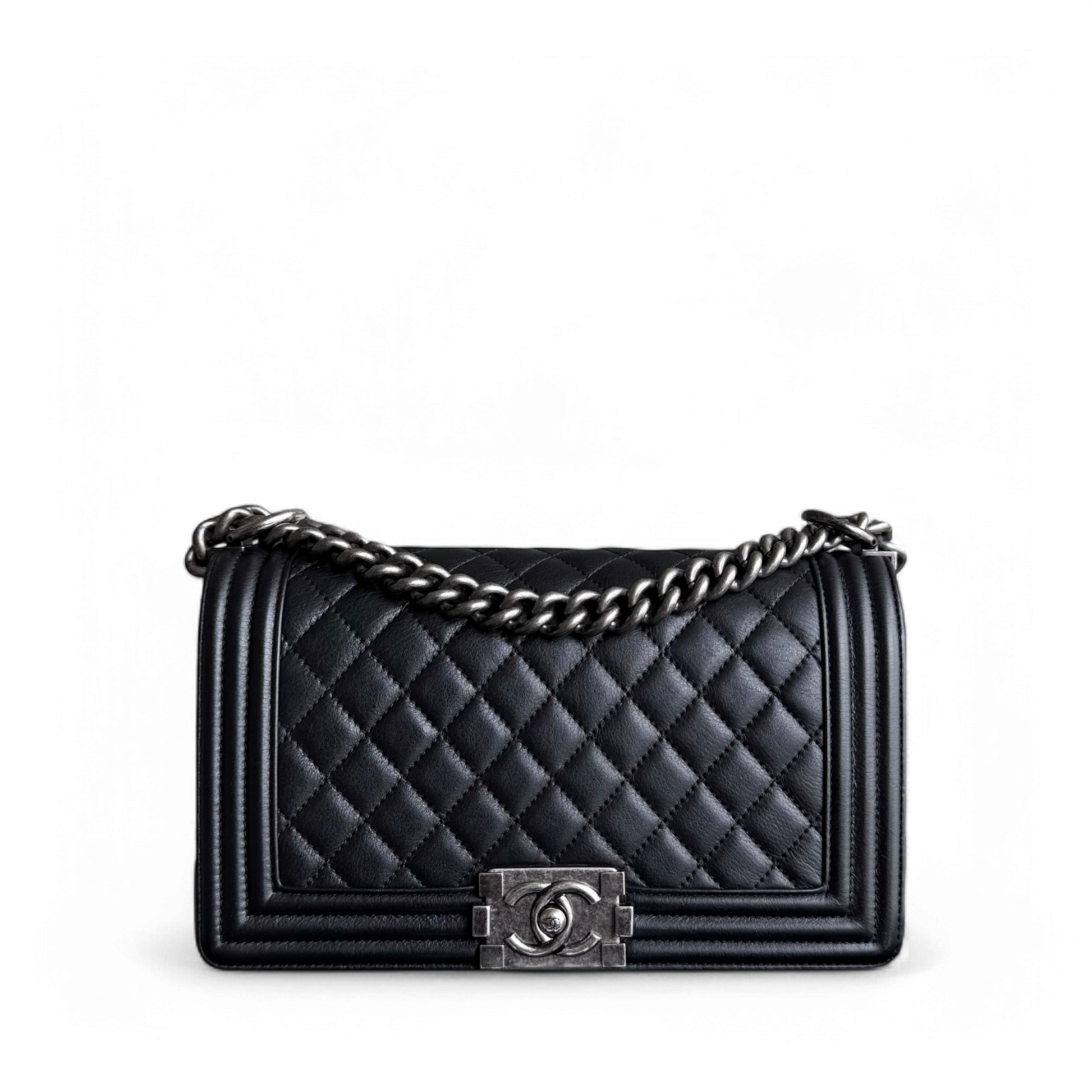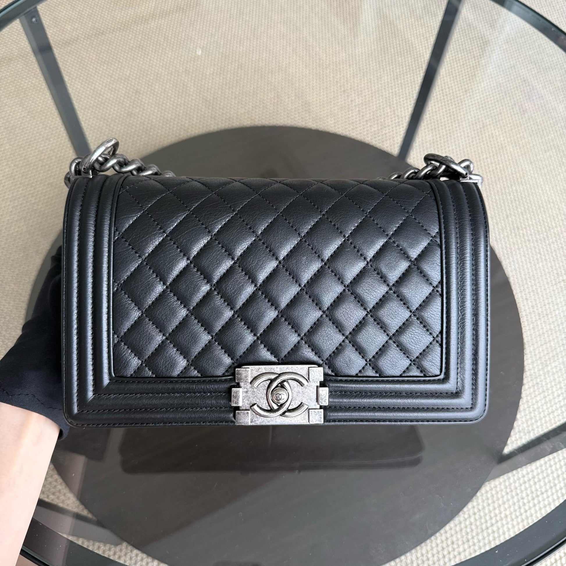Chanel Boy Medium - 25CM Quilted Calfskin Black Ruthenium Silver Hardware