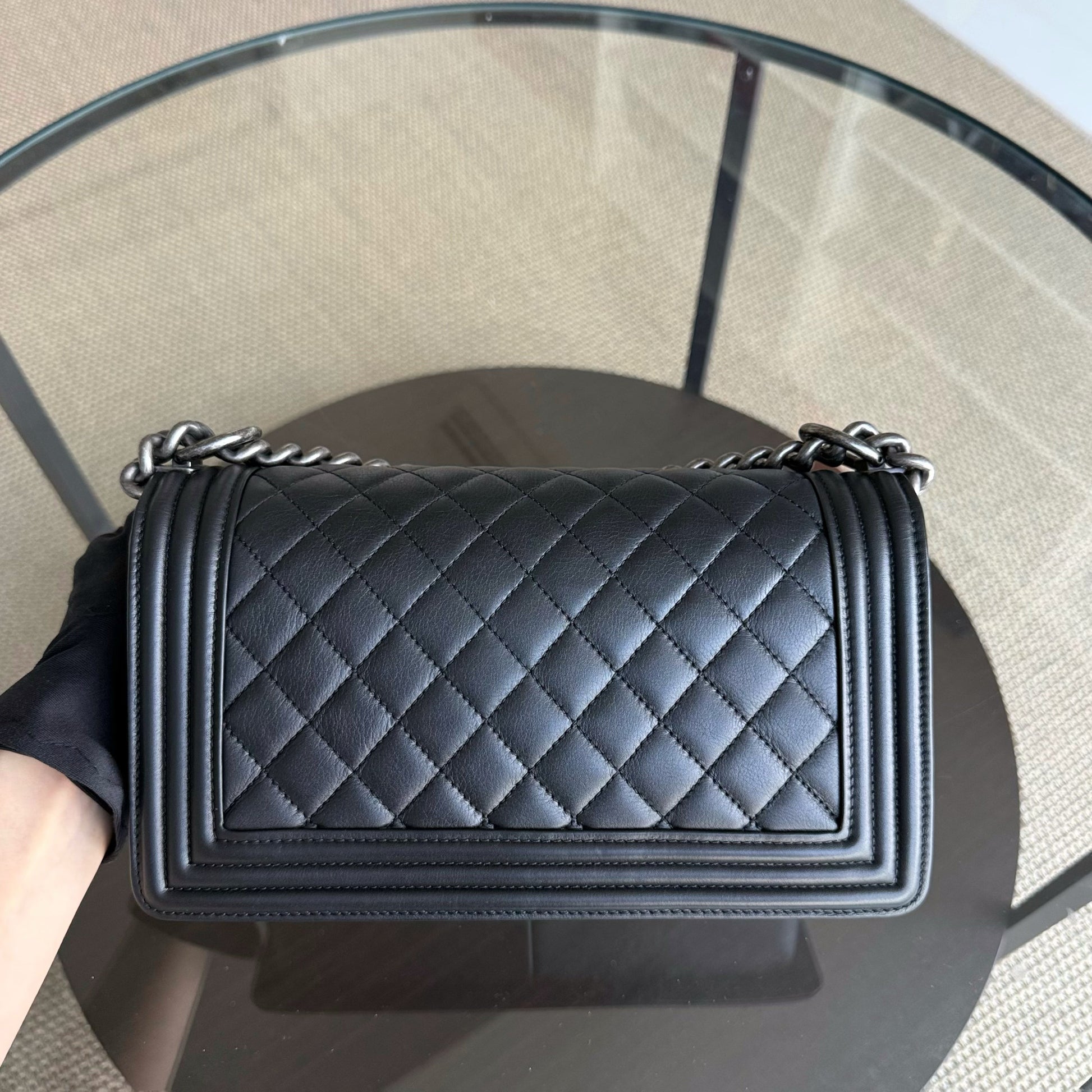 Chanel Boy Medium - 25CM Quilted Calfskin Black Ruthenium Silver Hardware Series 20