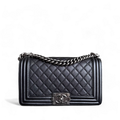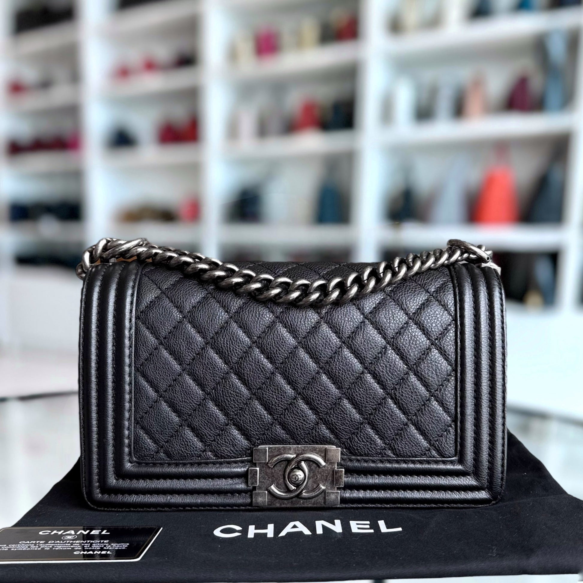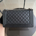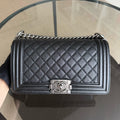 Chanel Boy Medium - 25CM Quilted Grained Calfskin Black Ruthenium Silver Hardware Series 18