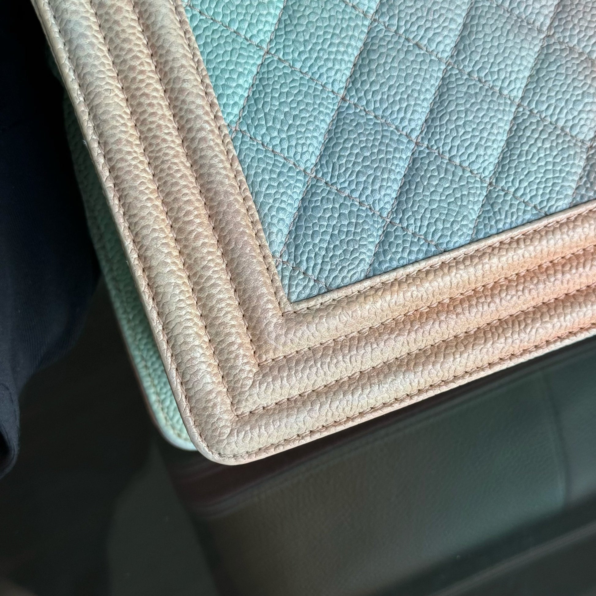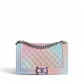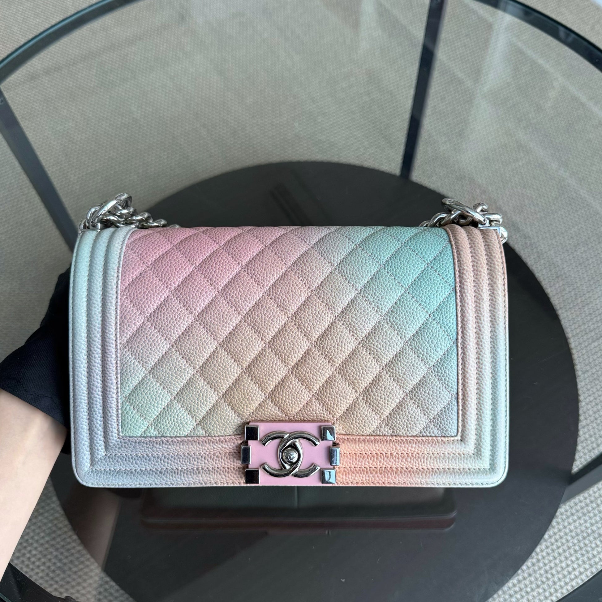 Chanel Boy Medium - 25CM Quilted Grained Calfskin Rainbow Limited Edition Silver Hardware Series 25