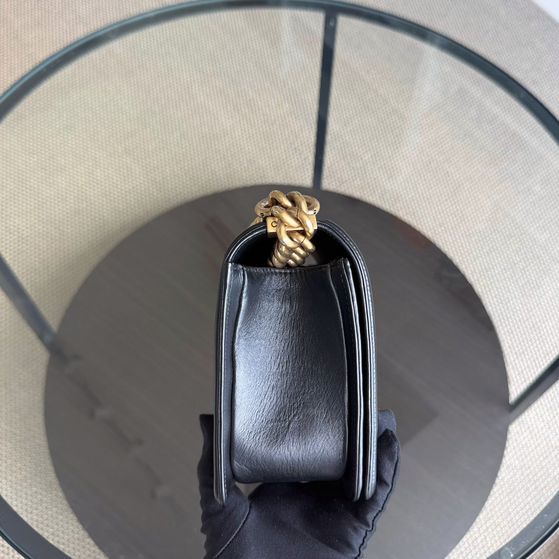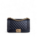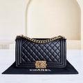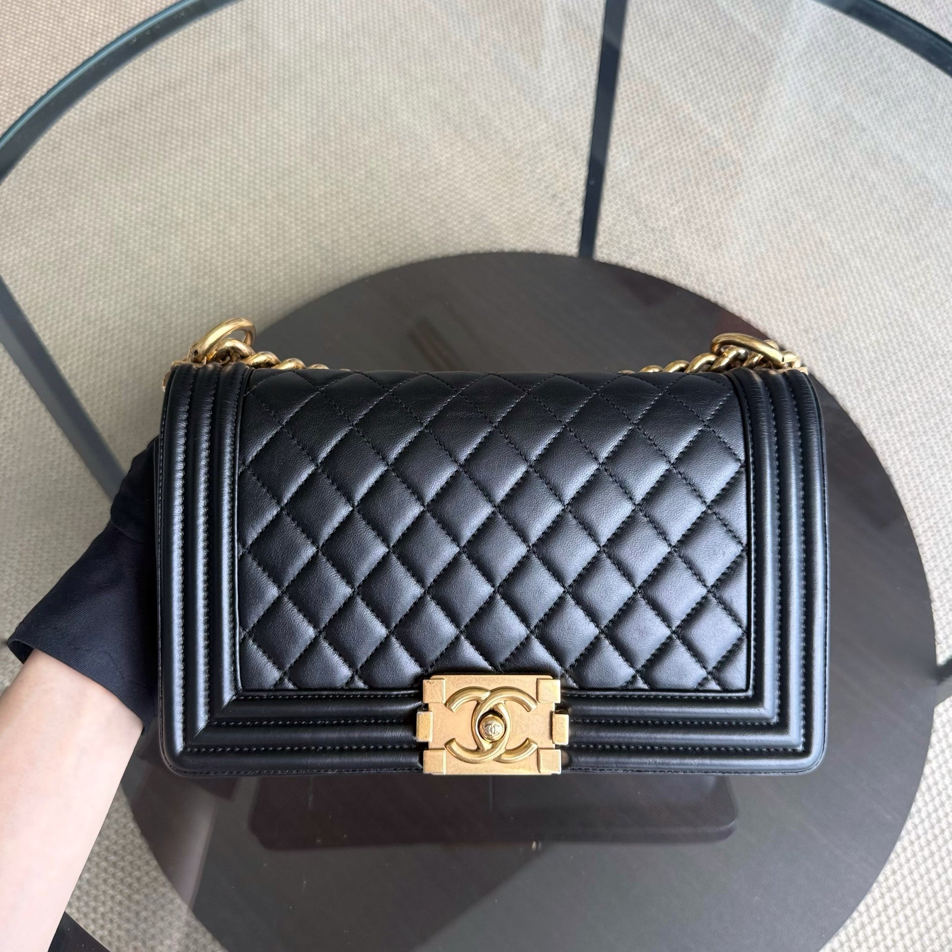 Chanel Boy Medium - 25CM Quilted Lambskin Black Gold Hardware Series 18