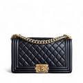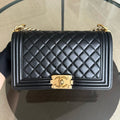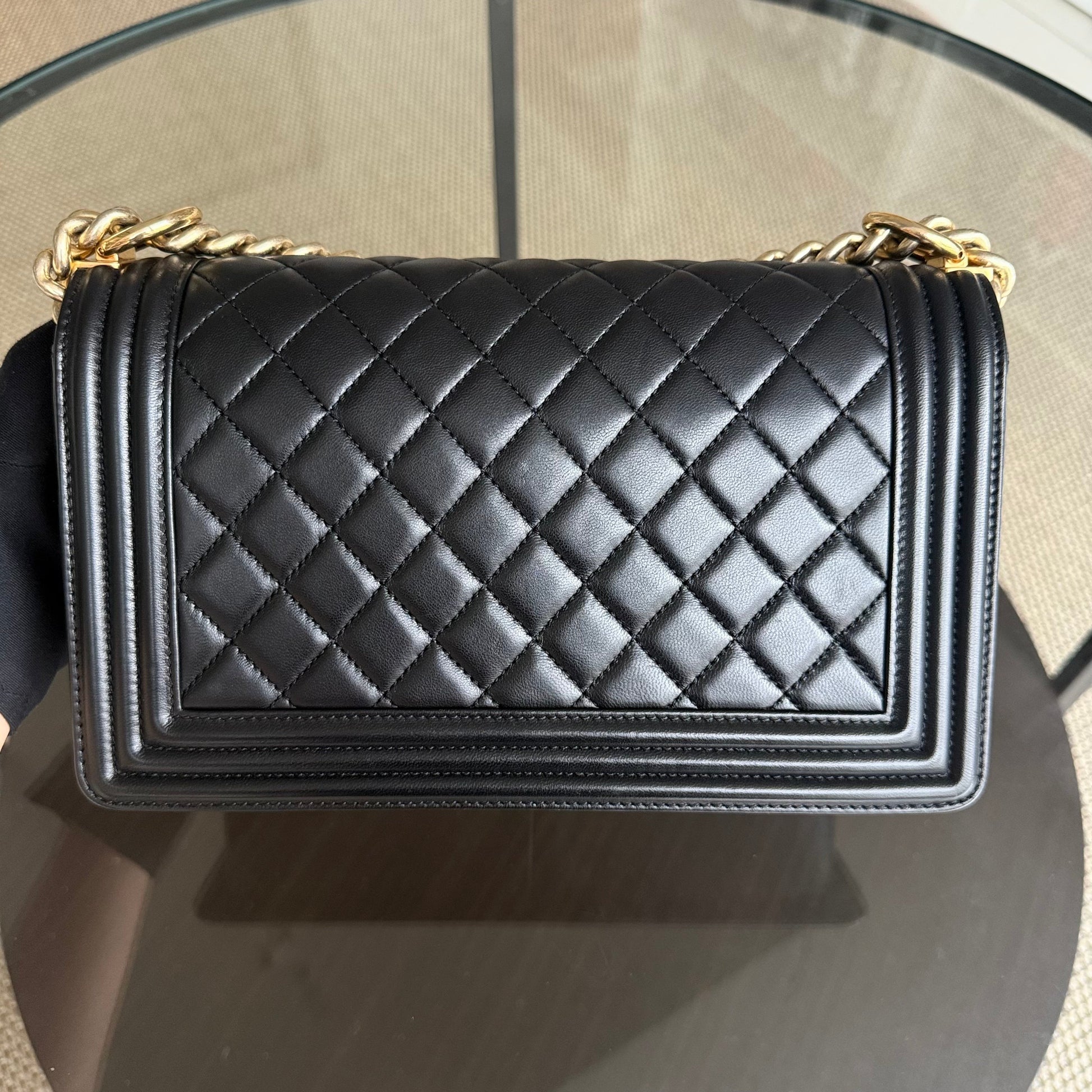 Chanel Boy Medium - 25CM Quilted Lambskin Black Gold Hardware Series 21