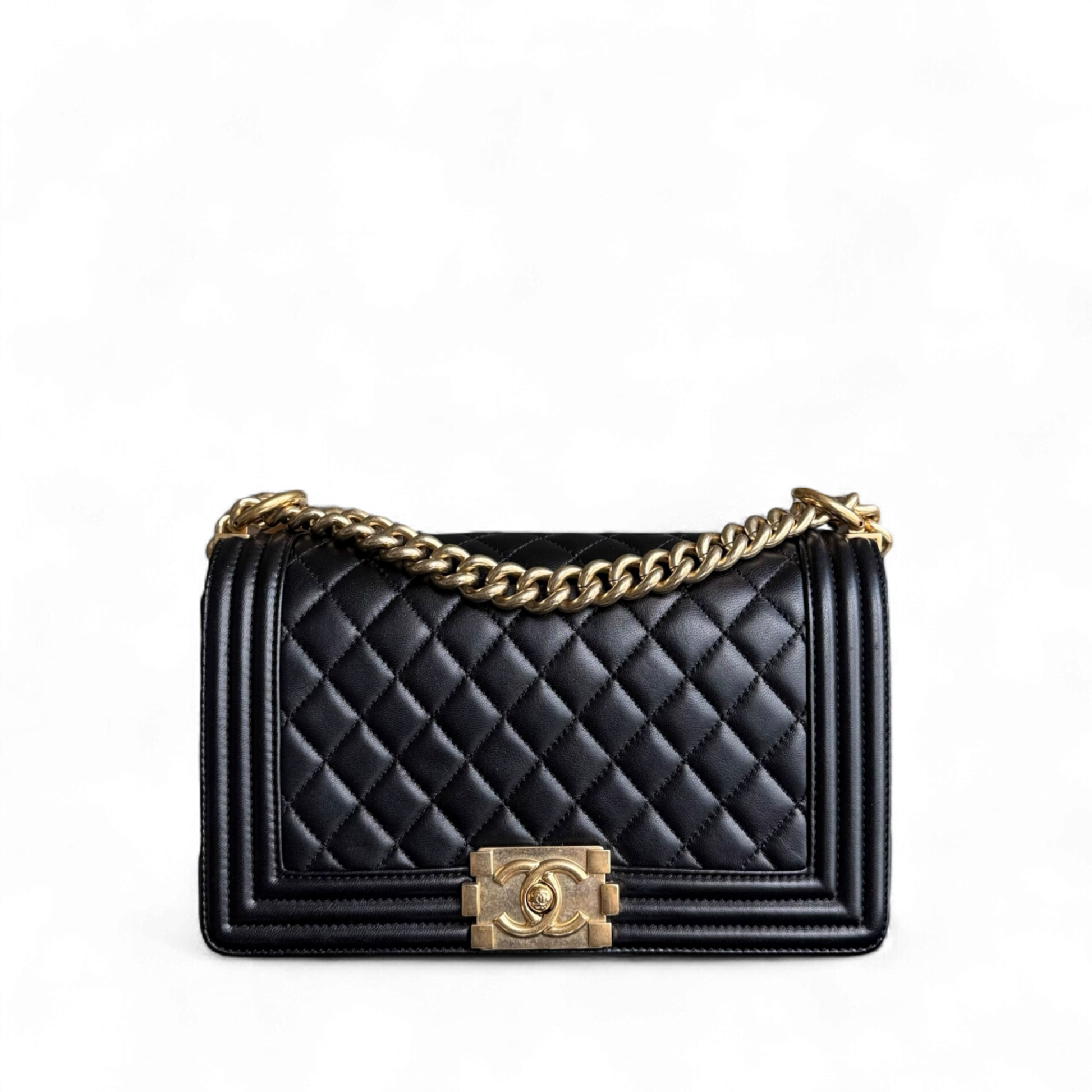 Chanel Boy Medium - 25CM Quilted Lambskin Black Gold Hardware Series 23