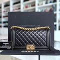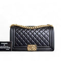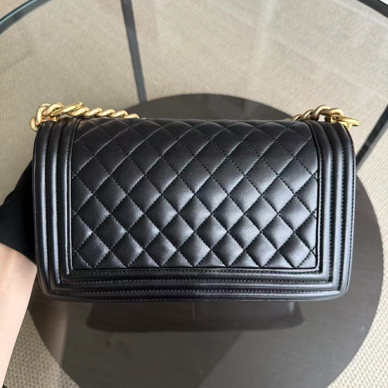 Chanel Boy Medium - 25CM Quilted Lambskin Black Gold Hardware Series 24