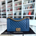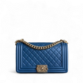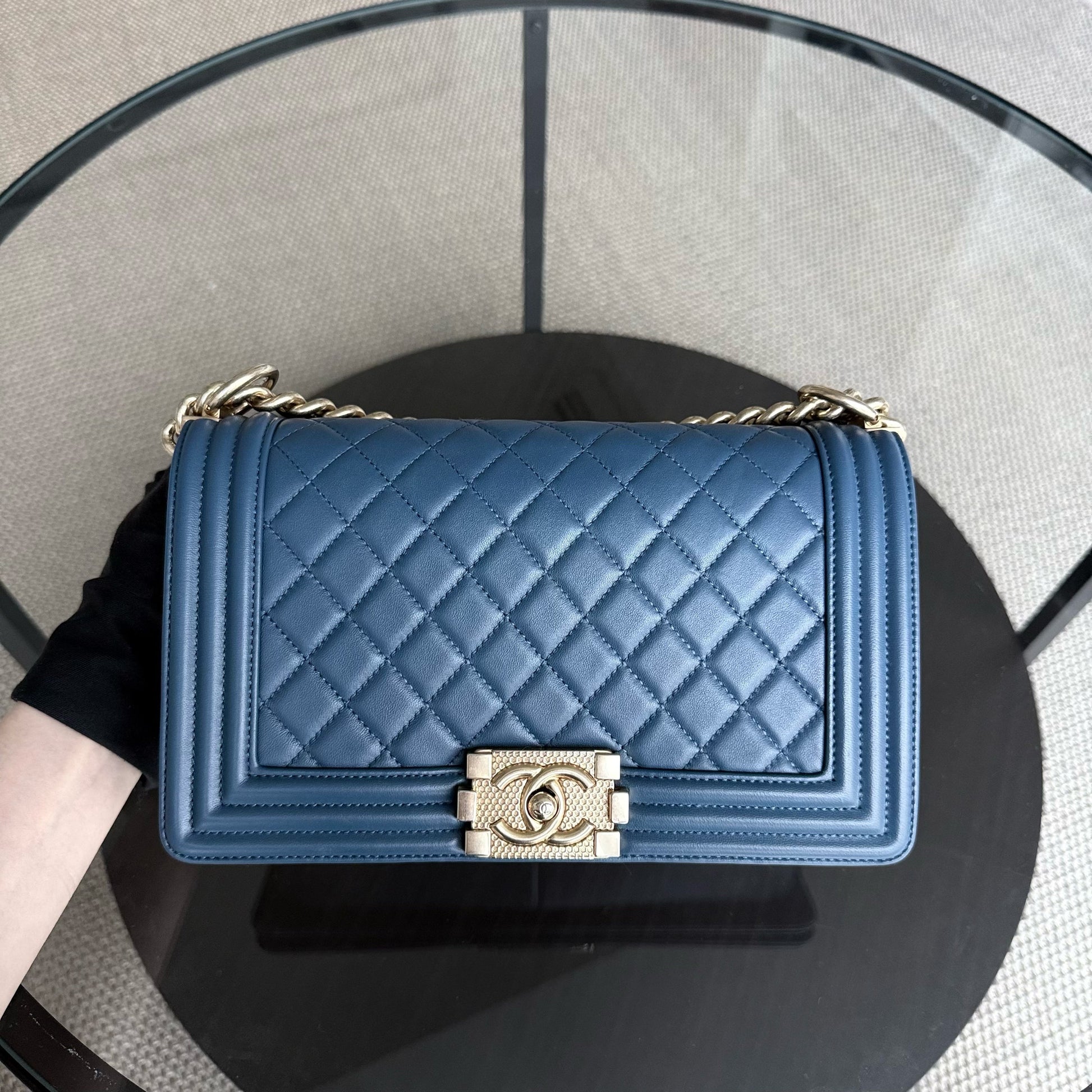 Chanel Boy Medium - 25CM Quilted Lambskin Blue Gold Hardware Limited Edition Gold Hardware Series 23