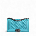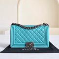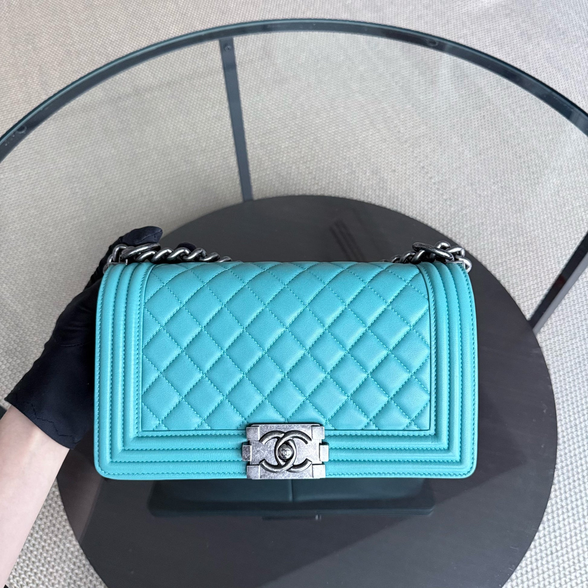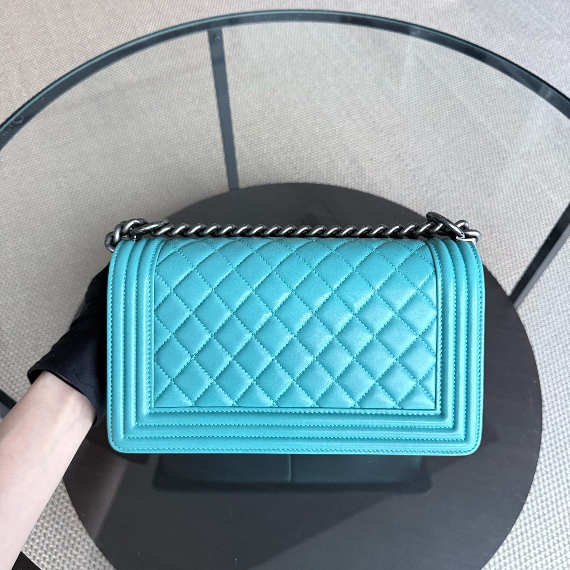Chanel Boy Medium - 25CM Quilted Lambskin Blue Ruthenium Silver Hardware Series 19