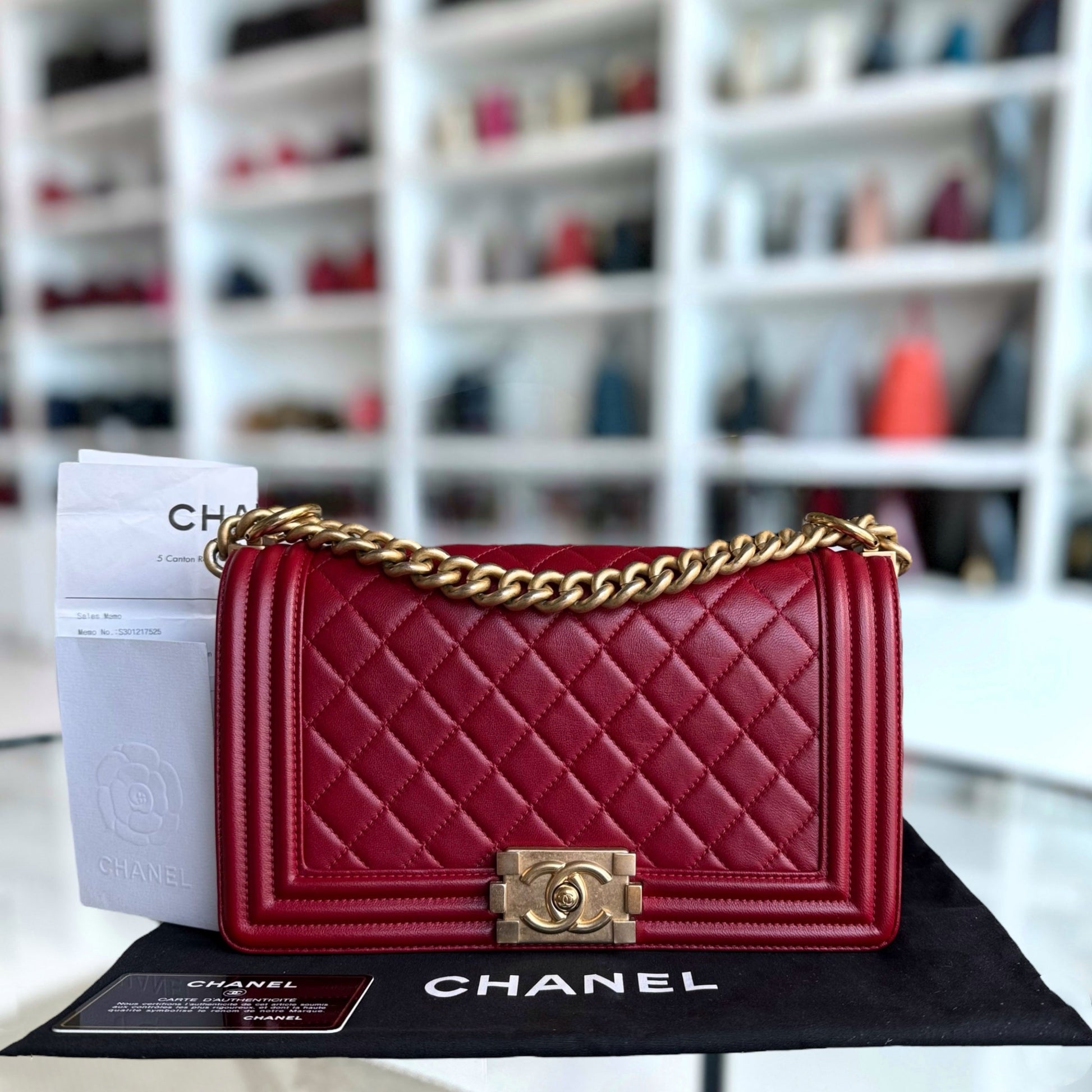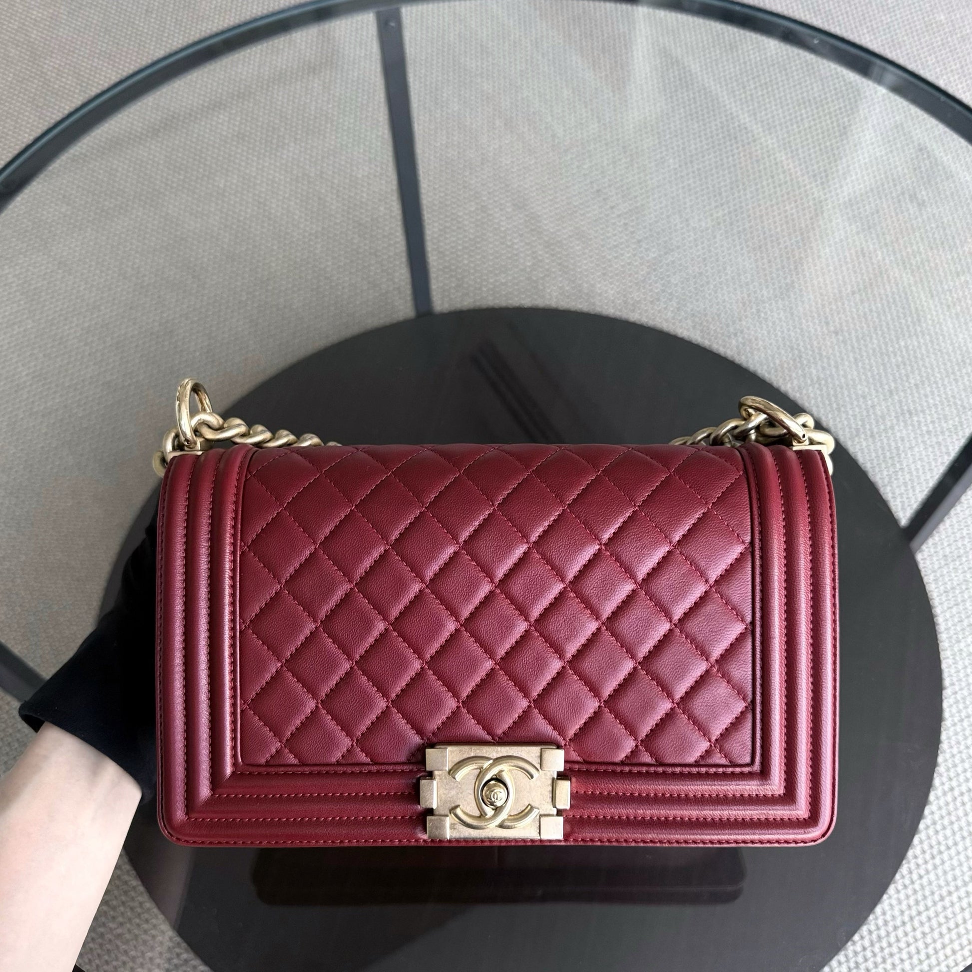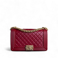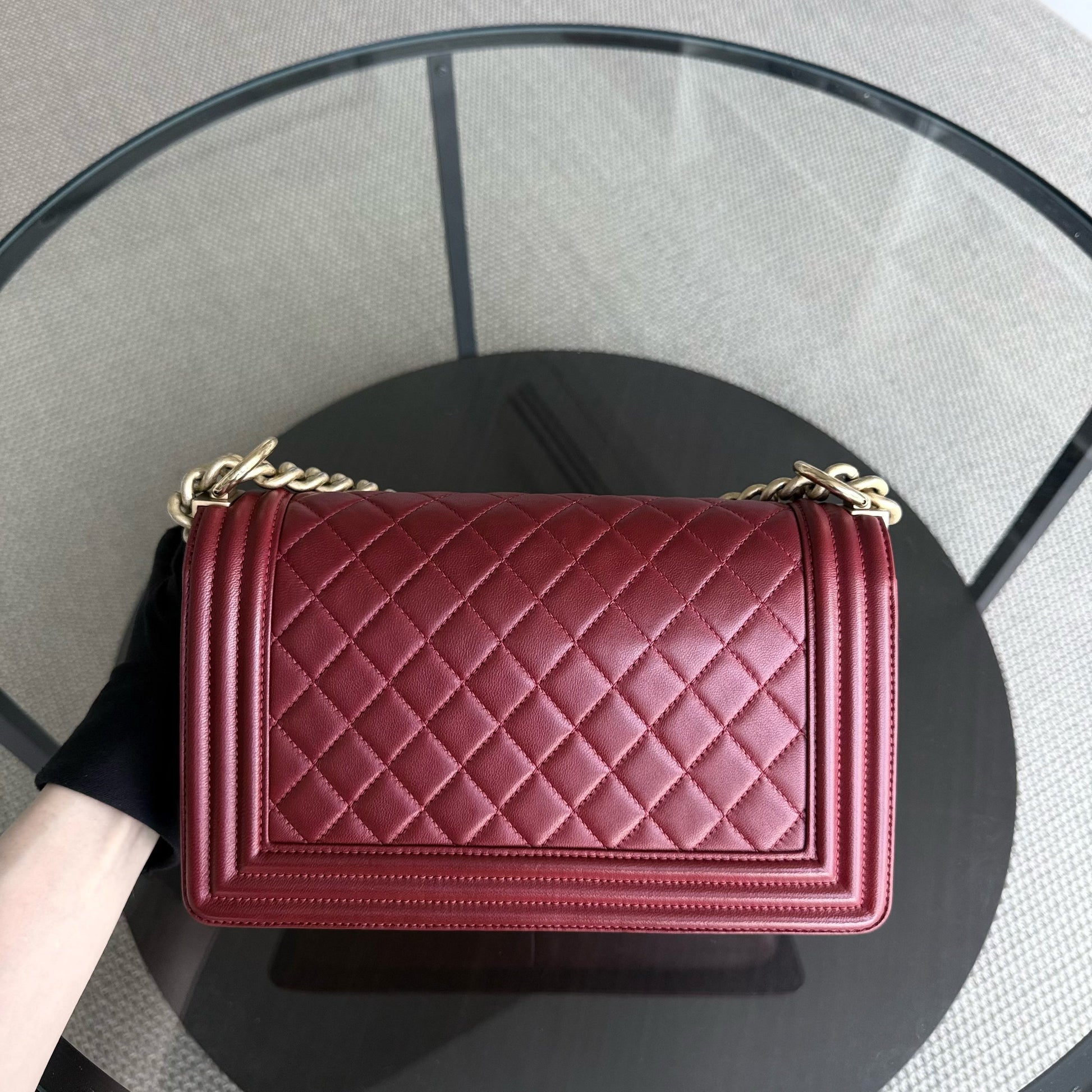 Chanel Boy Medium - 25CM Quilted Lambskin Red Gold Hardware Series 24